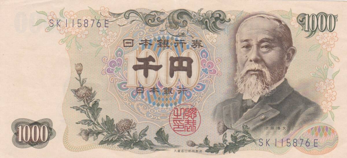 ◇伊藤博文1000円青 2桁 並品★