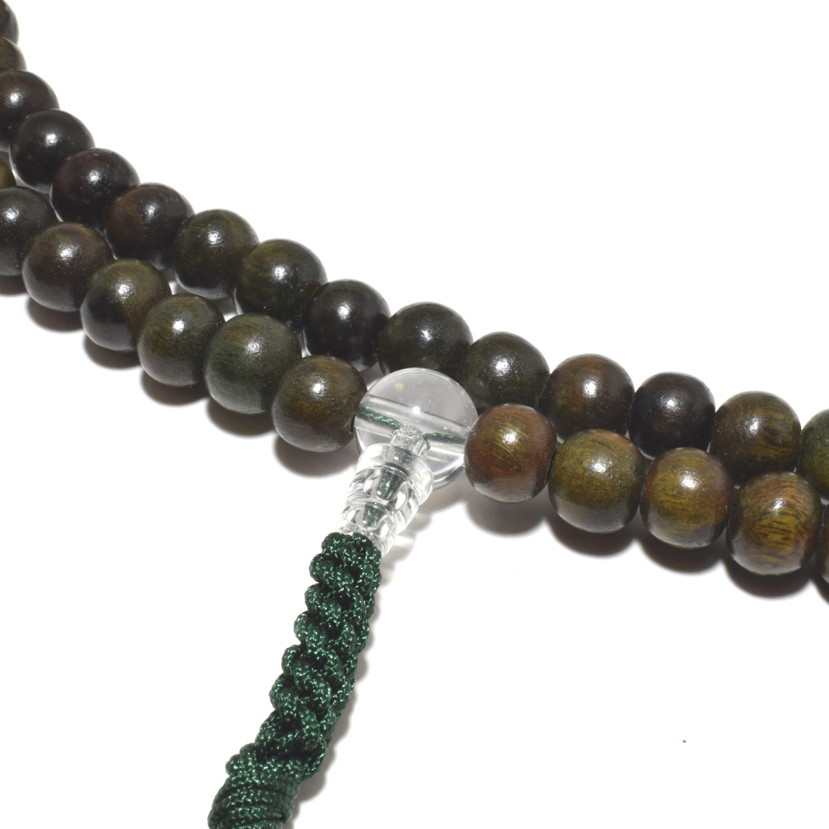 | 商品説明 | 主玉(緑檀) 約 10mm × 約 9mm 天玉(水晶) 約 8mm 親玉(水晶) 約 12mm 輪の引き伸ばしサイズ 約 47cm |