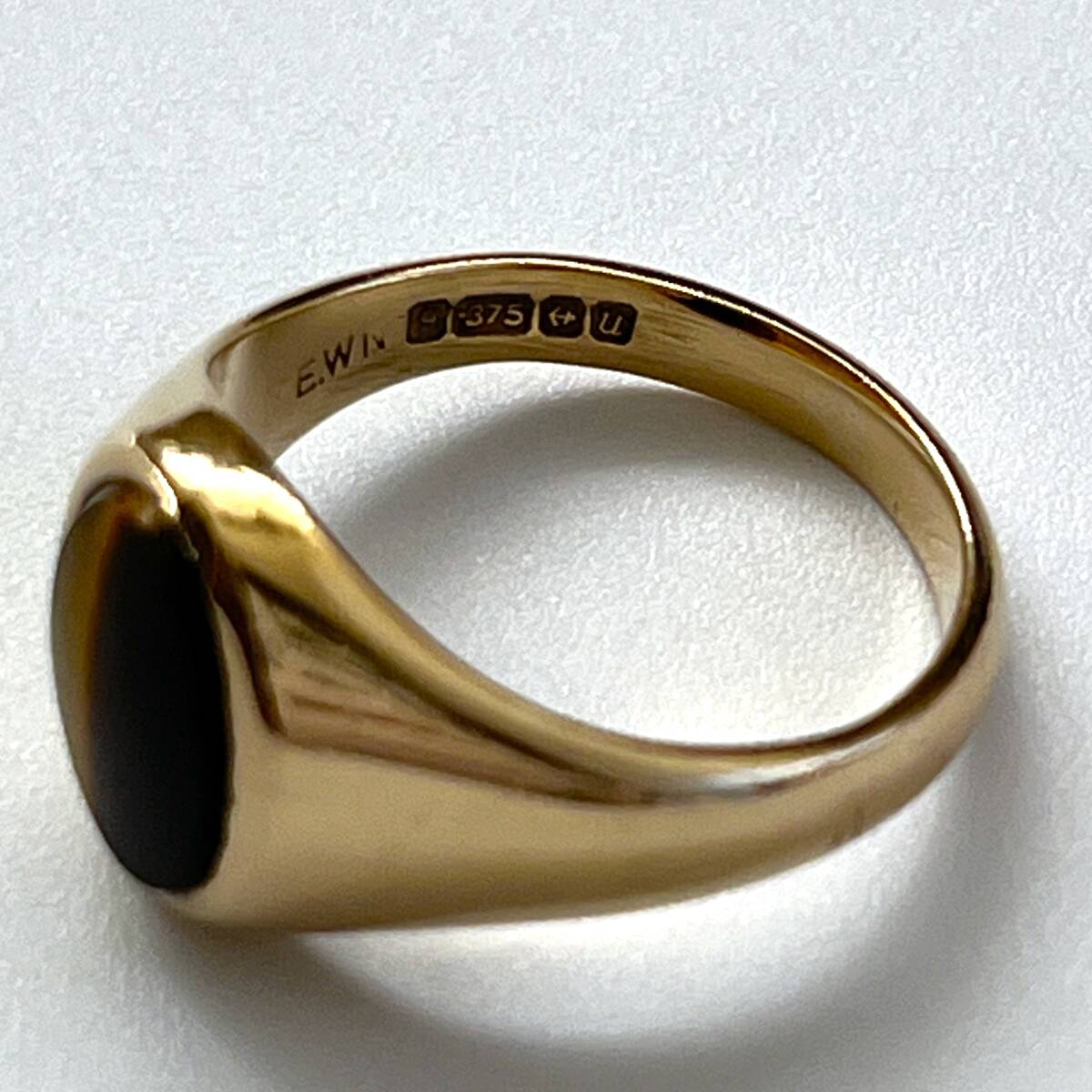 【Vintage】シグネットリング 9金 Gold ゴールド 375 9ct タイガーアイ Tiger Eye 英国 イギリス製 MADE IN UK 12.5号 4.6g 1969年