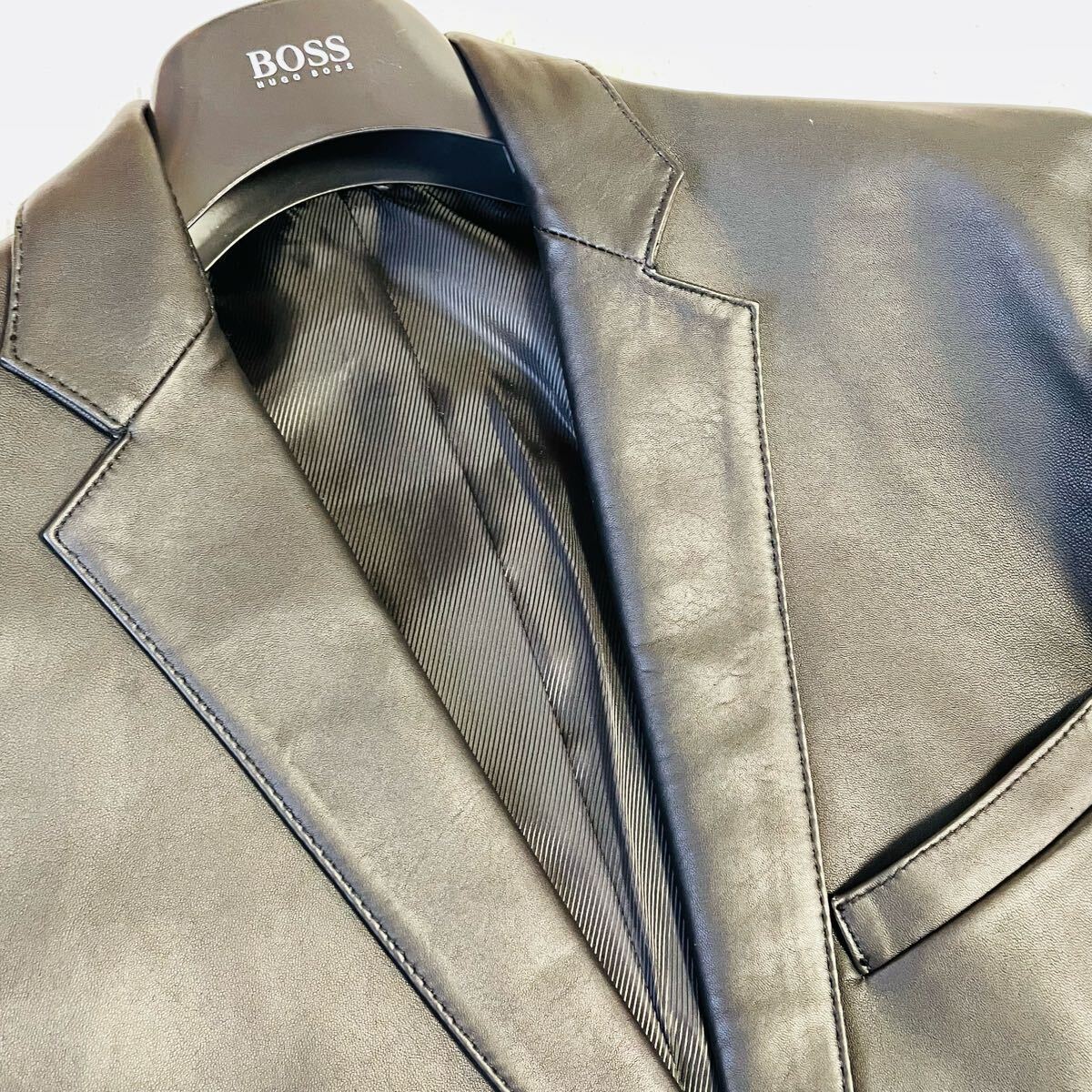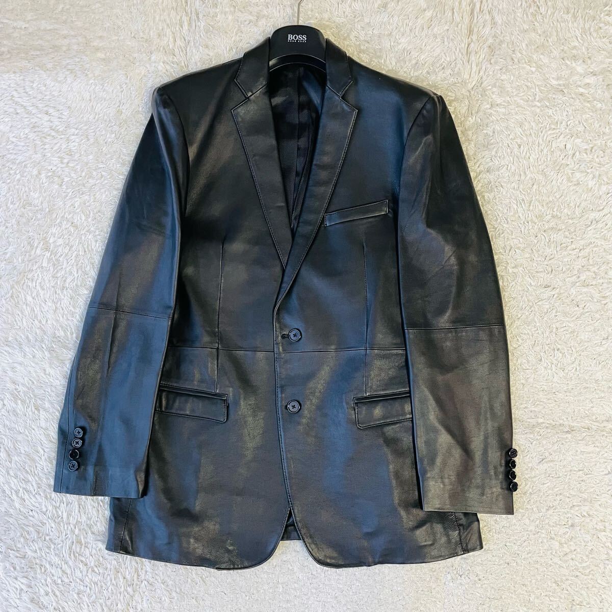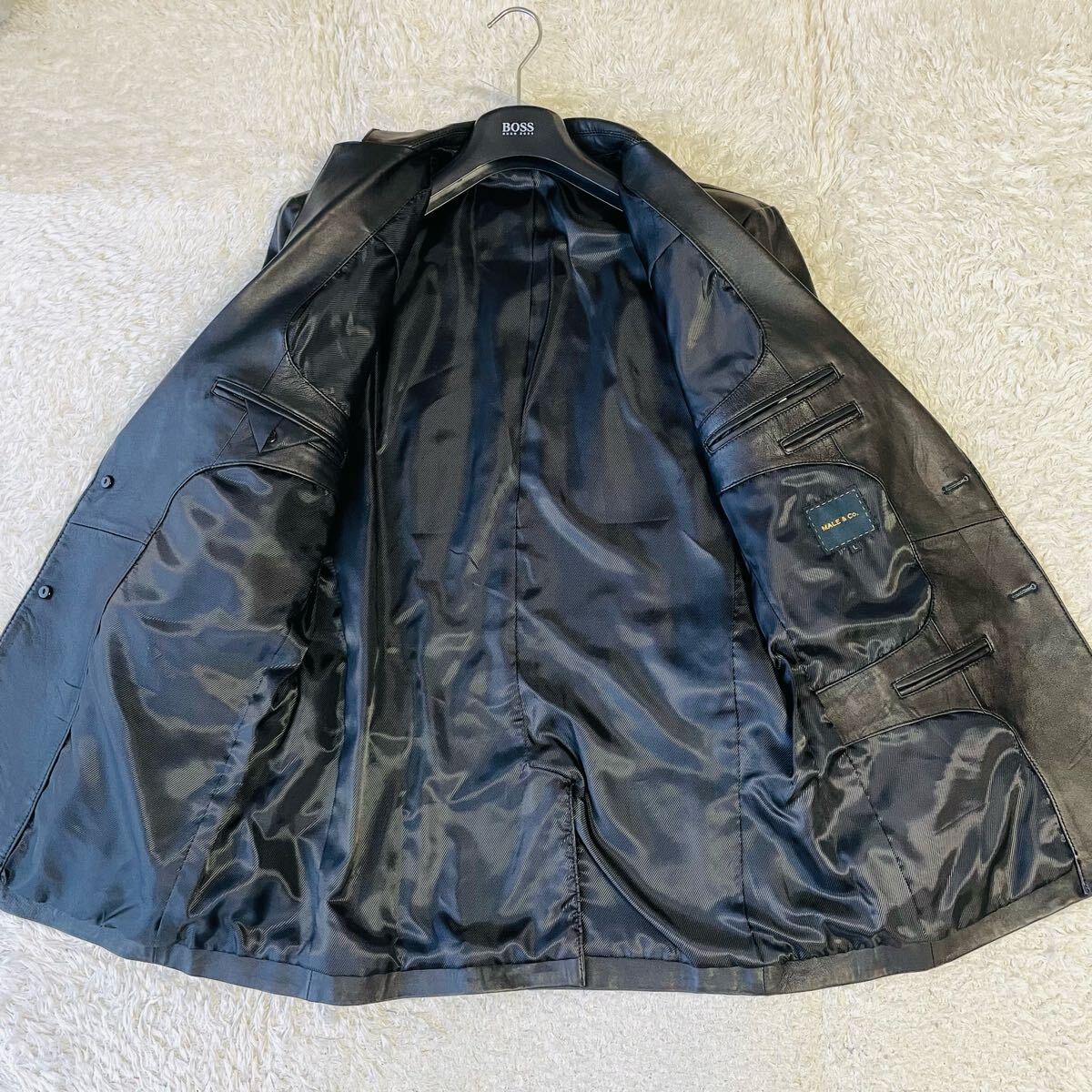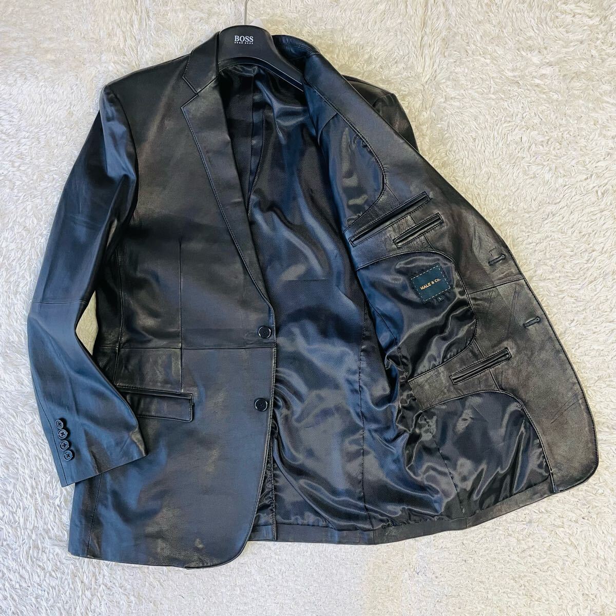 希少L〜LLサイズ!大きいサイズ◆メイル&コー MALE&CO レザー テーラードジャケット 羊革 ラムレザー シープスキン ブラック 黒