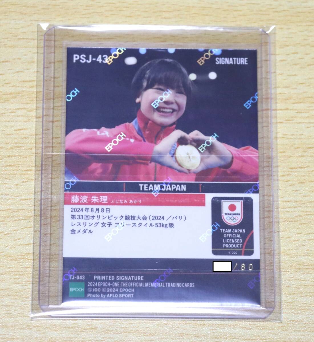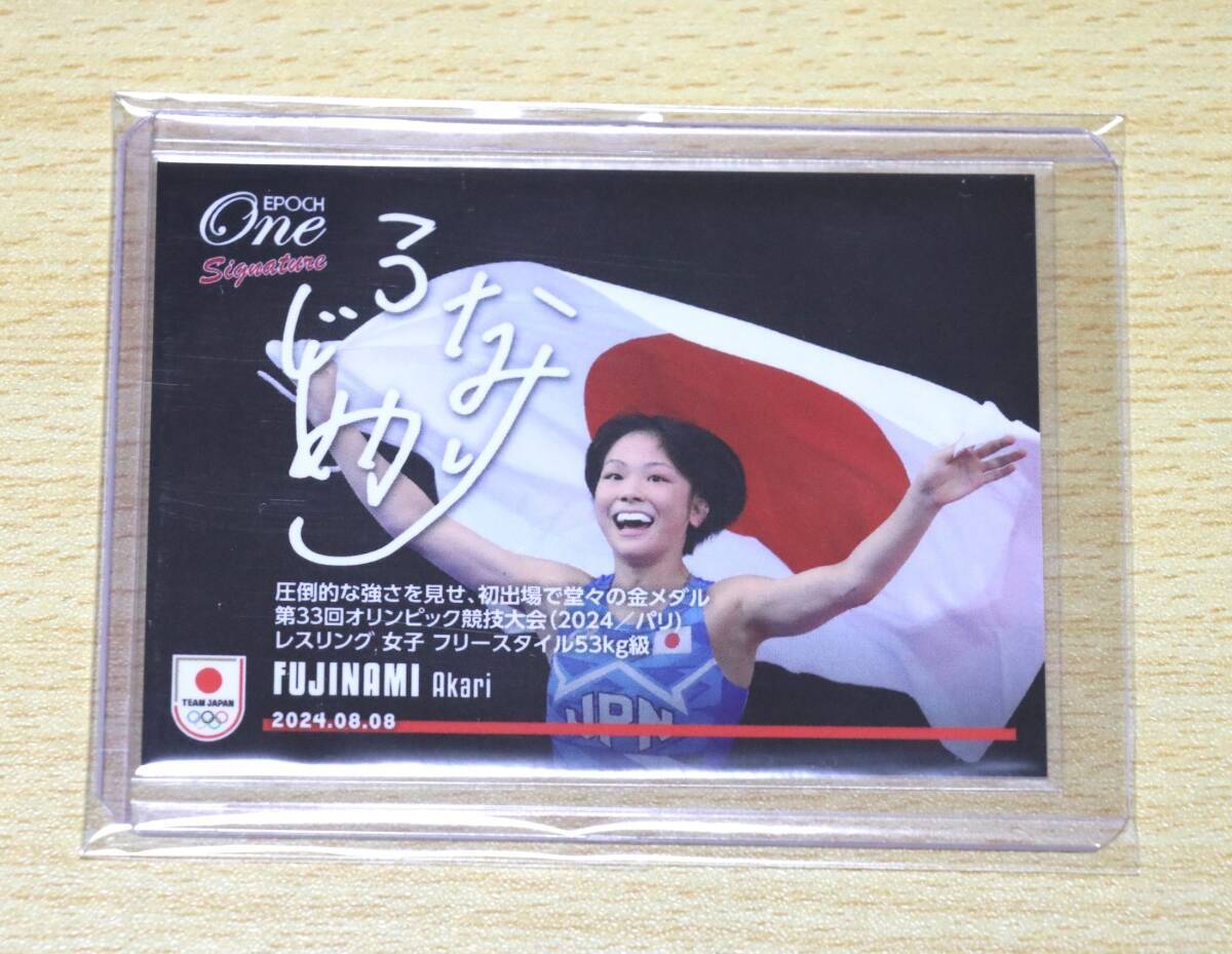 藤波朱理 EPOCH ONE エポックワン プリントシグネチャーカード(プリントサインカード) オリンピック 2024パリ レスリング 女子 フリースタイル 53kg級 金メダル 80枚限定発行です。気に入って頂けた方の落札を心よりお待ちしております。 商品は定型郵便(110円)又はゆうパケットポストミニで発送致します。厚さの関係上、定型郵便の場合は片面段ボール補強、ゆうパケットポストミニの場合は両面段ボール補強となります。どうかよろしくお願い致します。