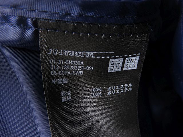 UNIQLO ユニクロ 中綿入りライナー付き 軽量 ナイロンコート ステンカラーコート ネイビー L