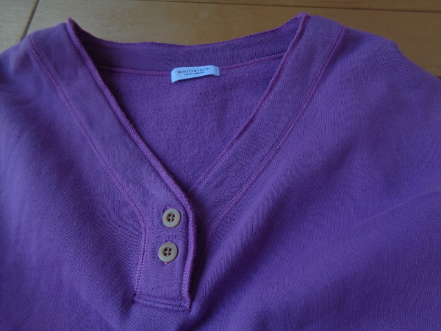 BEAUTY&YOUTH コットン100% V開き 長袖プルオーバー ゆっったり身幅♪ 細見え フリー 裏起毛☆ 日本製 ユナイテッドアローズ
