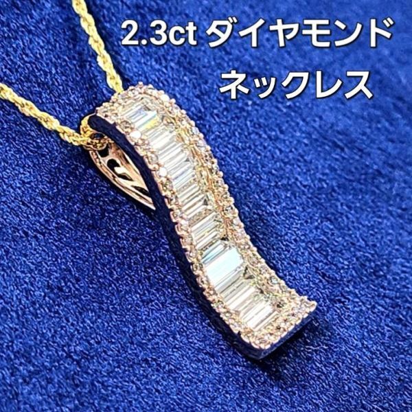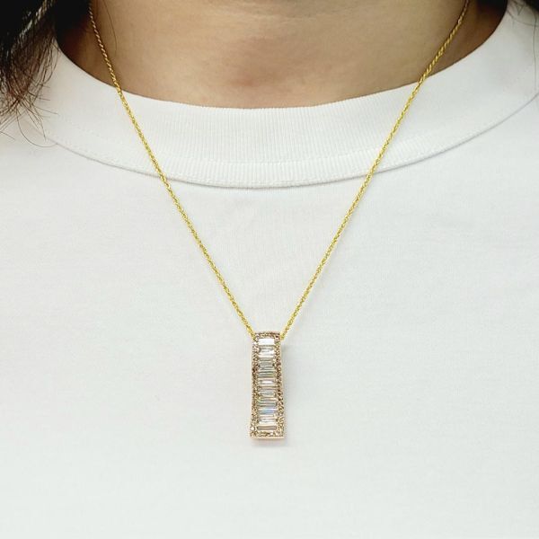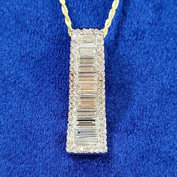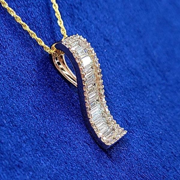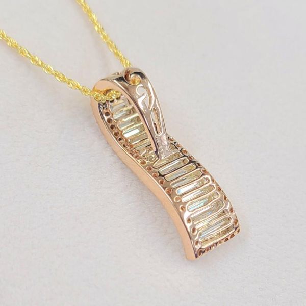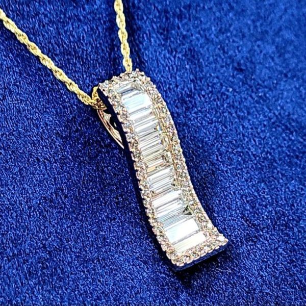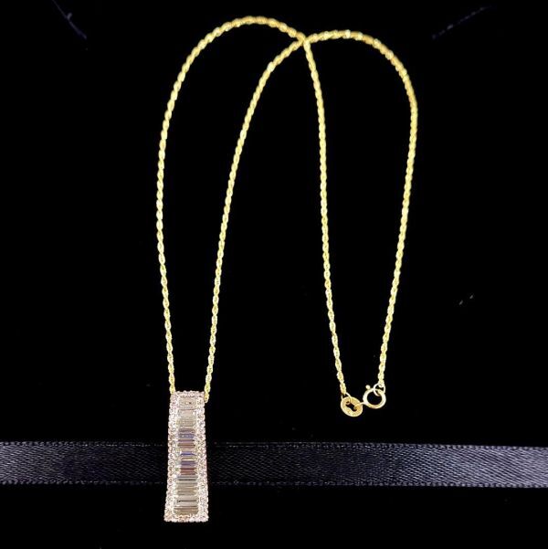 VS相当の高品質バゲットカットダイヤモンドを贅沢に使用した、18金製のペンダントネックレスです。