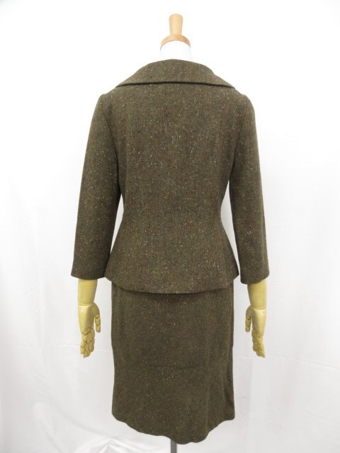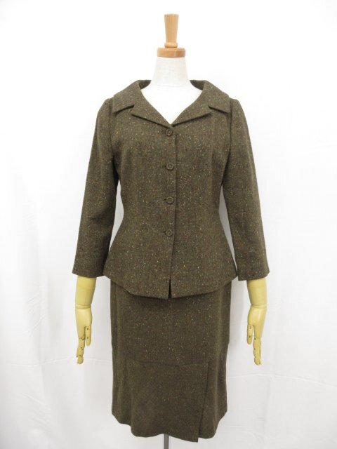 HH超美品【Sybilla シビラ】ネップ混 ウールジャケット×スカート セットアップ スーツ (レディース) S/M カーキブラウン系 ◯17LS1100◯
