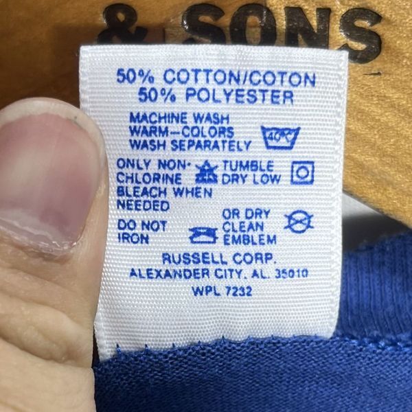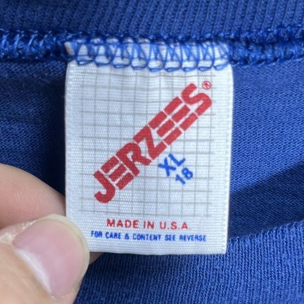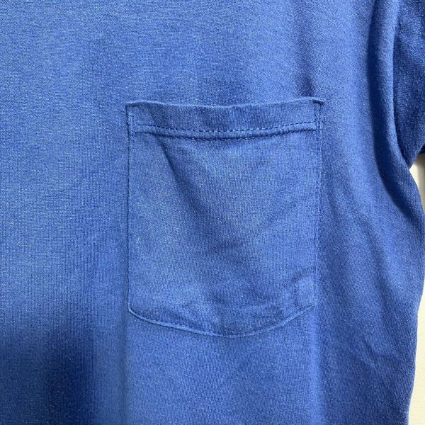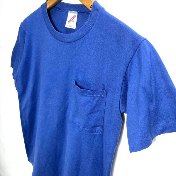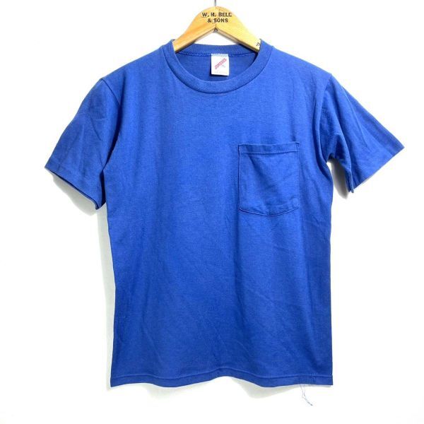 ■ 子供用 90s 90年代 ビンテージ USA製 JERZEES ジャージーズ 片胸 ポケット付き 無地 シングルステッチ Tシャツ サイズXL 青 アメカジ ■