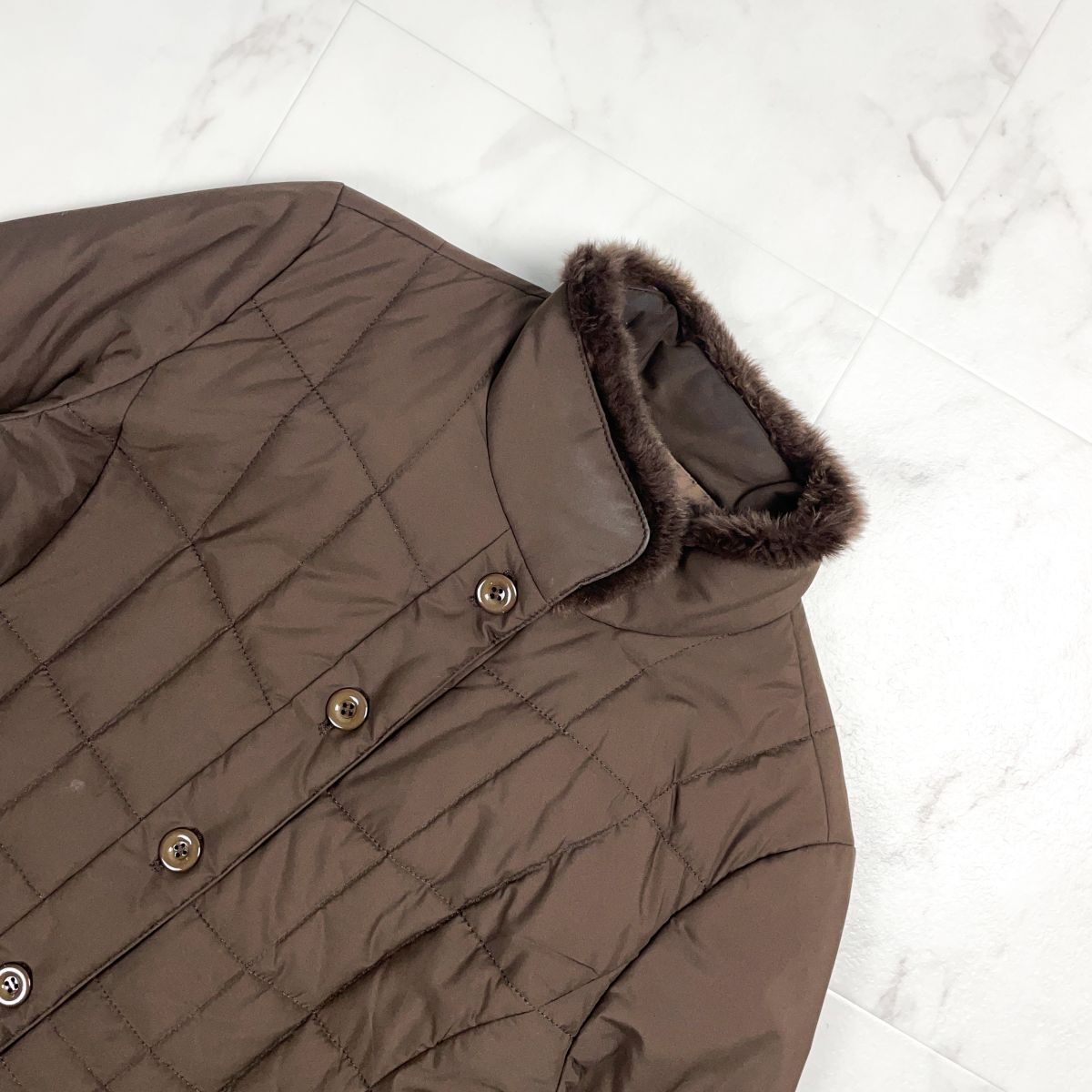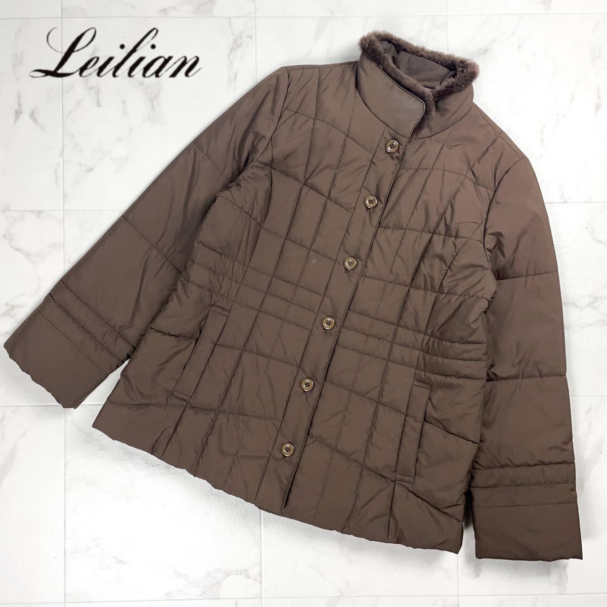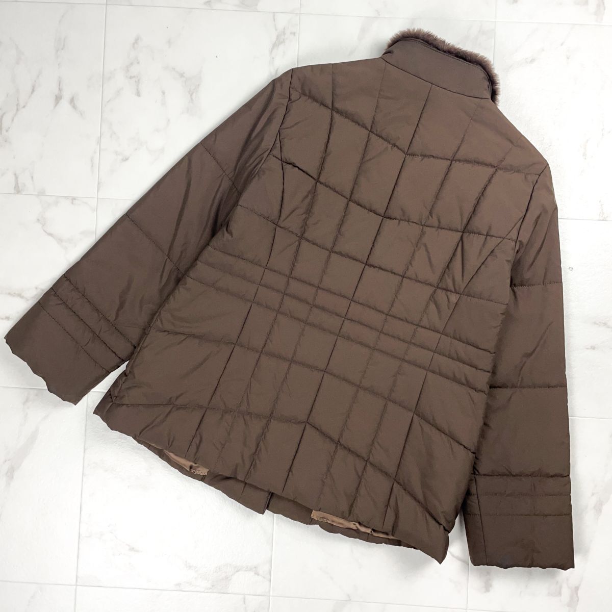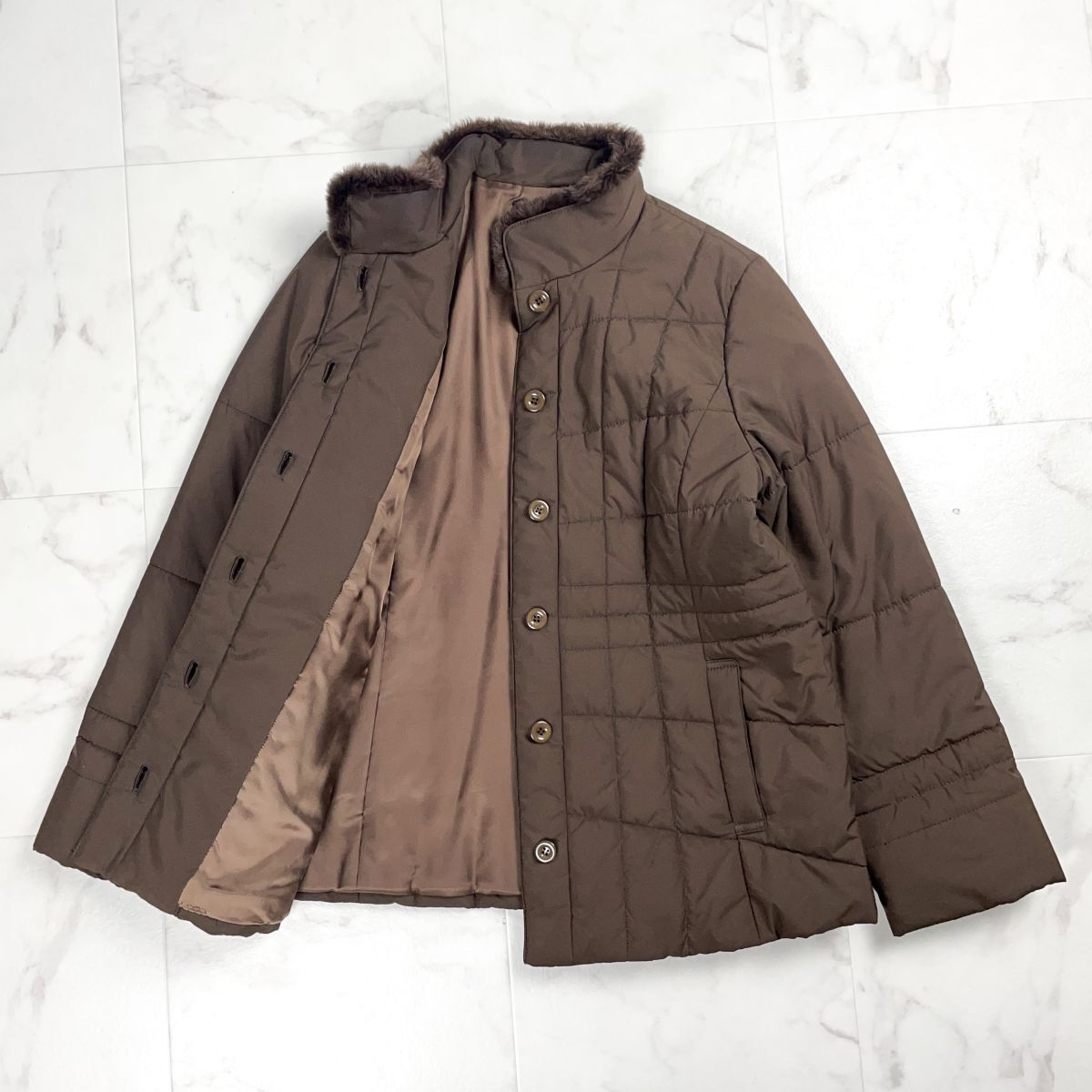 Leilian レリアン 希少ヌートリアファー付 中綿ダウン スタンドカラージャケットコート レディース ブラウン 茶色 サイズ13*ZC241