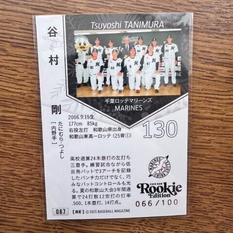 BBM 2025 ルーキーエディション ロッテ 谷村剛 パラレル 100枚限定 2