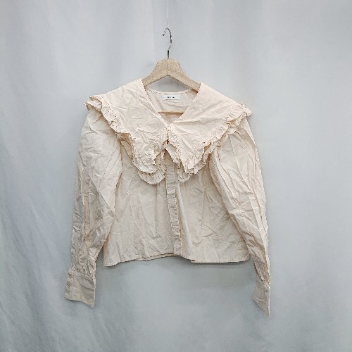 ◇ ⊂ one after another NICE CLAUP フリル 長袖 ブラウス サイズF コーラルベージュ レディース E