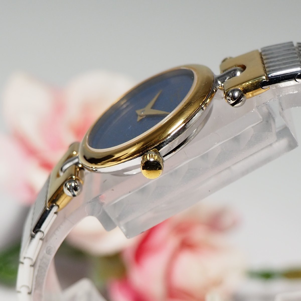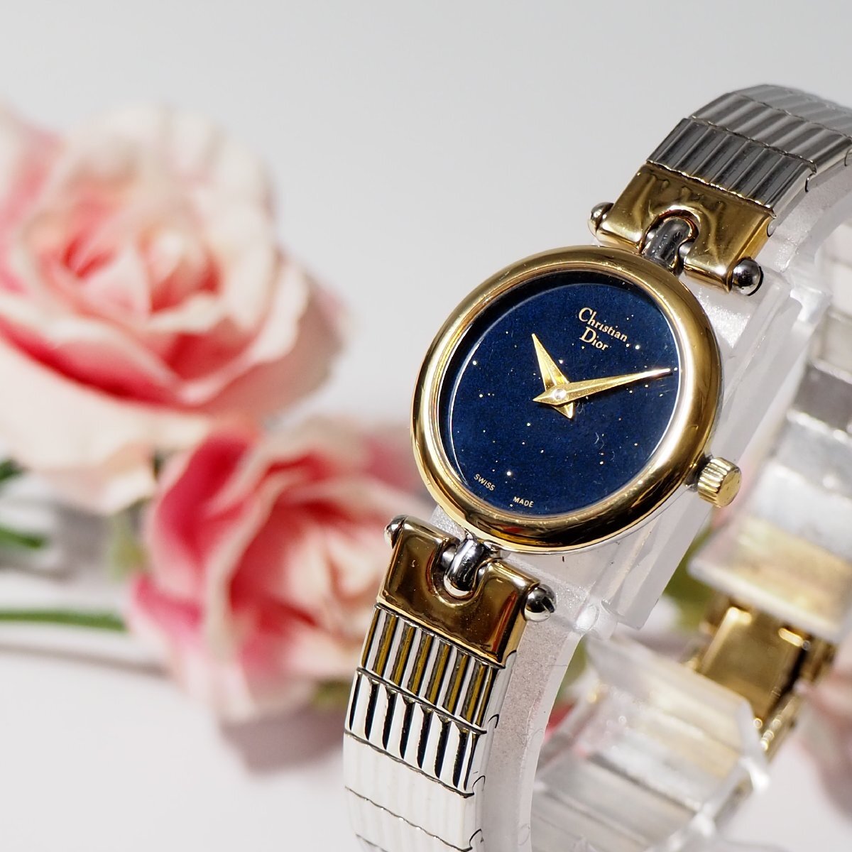 ディオールのネイビー文字盤にゴールドラメのレディース腕時計です。 ほぼ見かけないレアな時計です。 稼働品で除菌クリーニング致しておりますのですぐにご使用いただける状態です。 ☆管理番号:F566 ☆稼働品 ☆クリーニング (超音波洗浄+磨き作業+エタノール除菌クリーニング) ☆防水:- ☆ムーブメント:クォーツ ☆素材:ステンレス ☆電池交換:稼働品のため電池交換致しておりません。 【サイズ】 ◇ケース幅約21mm×21mm(リューズ含まず) ◇厚さ約5mm ◇腕回り約160mm 【カラー】 ◇文字盤:ネイビー・ゴールドラメ ◇ケース:ゴールド(裏側はシルバー) ◇ベゼル:ゴールド ◇ベルト:シルバー・ゴールド 【状態】 ◇A ☆ケース:キズなし ☆ベゼル:キズなし ☆ガラス:キズなし ☆裏蓋:わずかに薄キズ ☆ベルト:わずかに薄キズ ☆その他特記事項:- 【付属品】 ◇本体のみ ※公安委員会の古物商許可証の元古物市場(コメ兵、ブランドオフ、エコリング等)にて購入したものです。 全て【正規品保証】致します。 過去1度も経験はございませんがコピー品であった場合返品返金対応をさせていただきますので安心してご購入下さい。 |