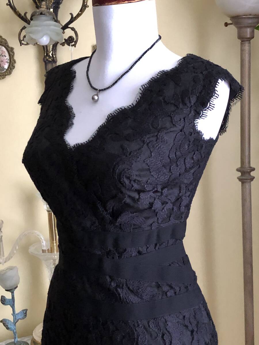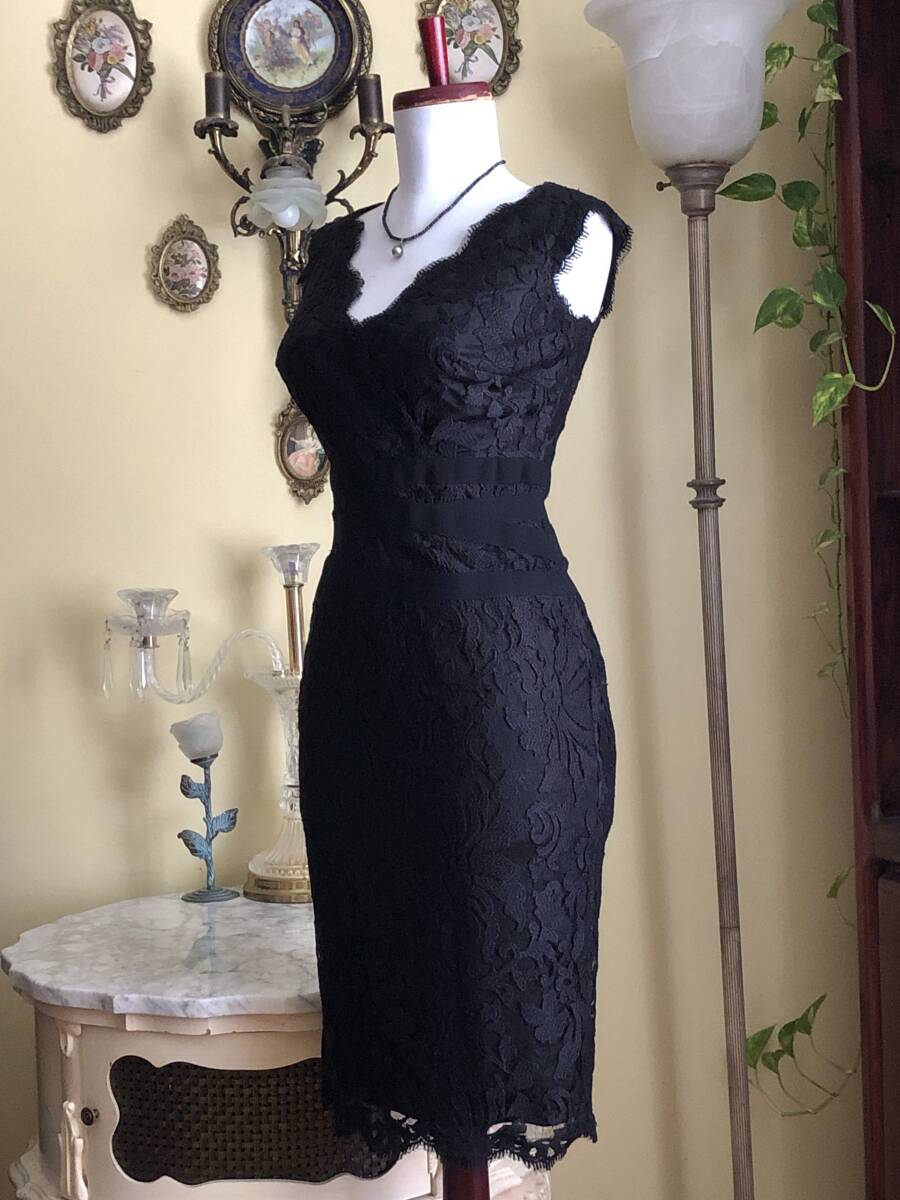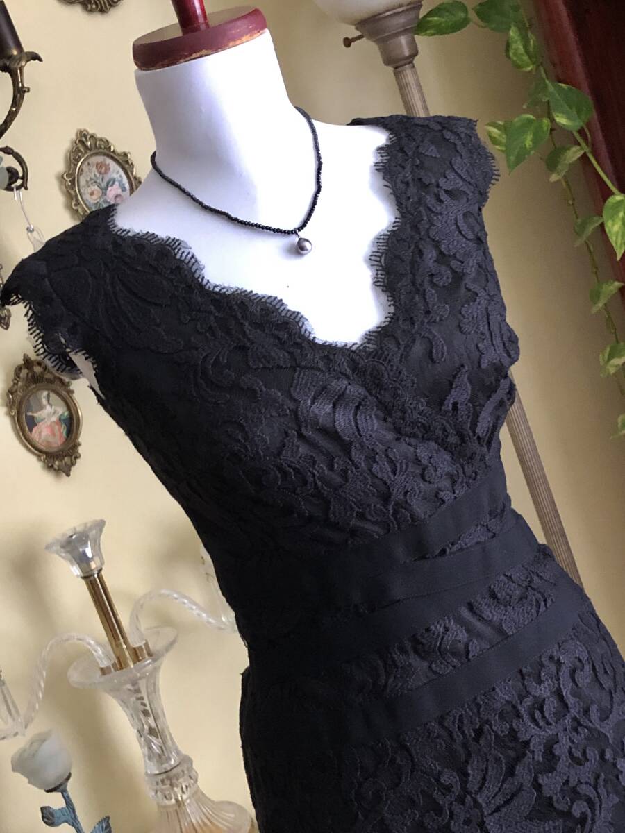 【状態】中古 綺麗なお品です。 【ブランド】TADASHI SHOJI 【サイズ】表示サイズ/us(アメリカ)2 日本対応サイズ目安/ 7号サイズぐらい *個人差がございます。必ず採寸をご参照ください。 【採寸】平置き採寸です。 身幅44㎝、ウエスト33cm、ヒップ45cm、着丈100㎝ 【カラー】黒 【素材】コットン60%、ナイロン40% 【裏地の素材】ポリエステル100% 【着脱】後ファスナー