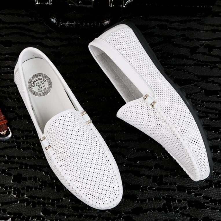 ローファー メンズ 紳士靴 透かし彫り メッシュ サンダル シューズ カジュアル スリッポン ドライビングシューズ 白 24cm~27cm