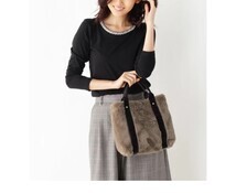 新品 pink adobe 【2WAY】エコファー×ベロアミニトートバッグ アイボリー(004) 定価2198円