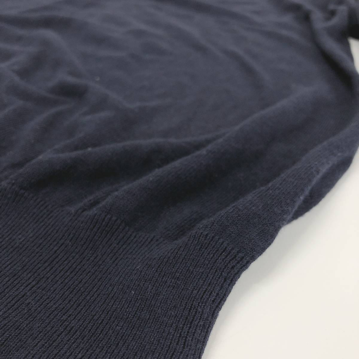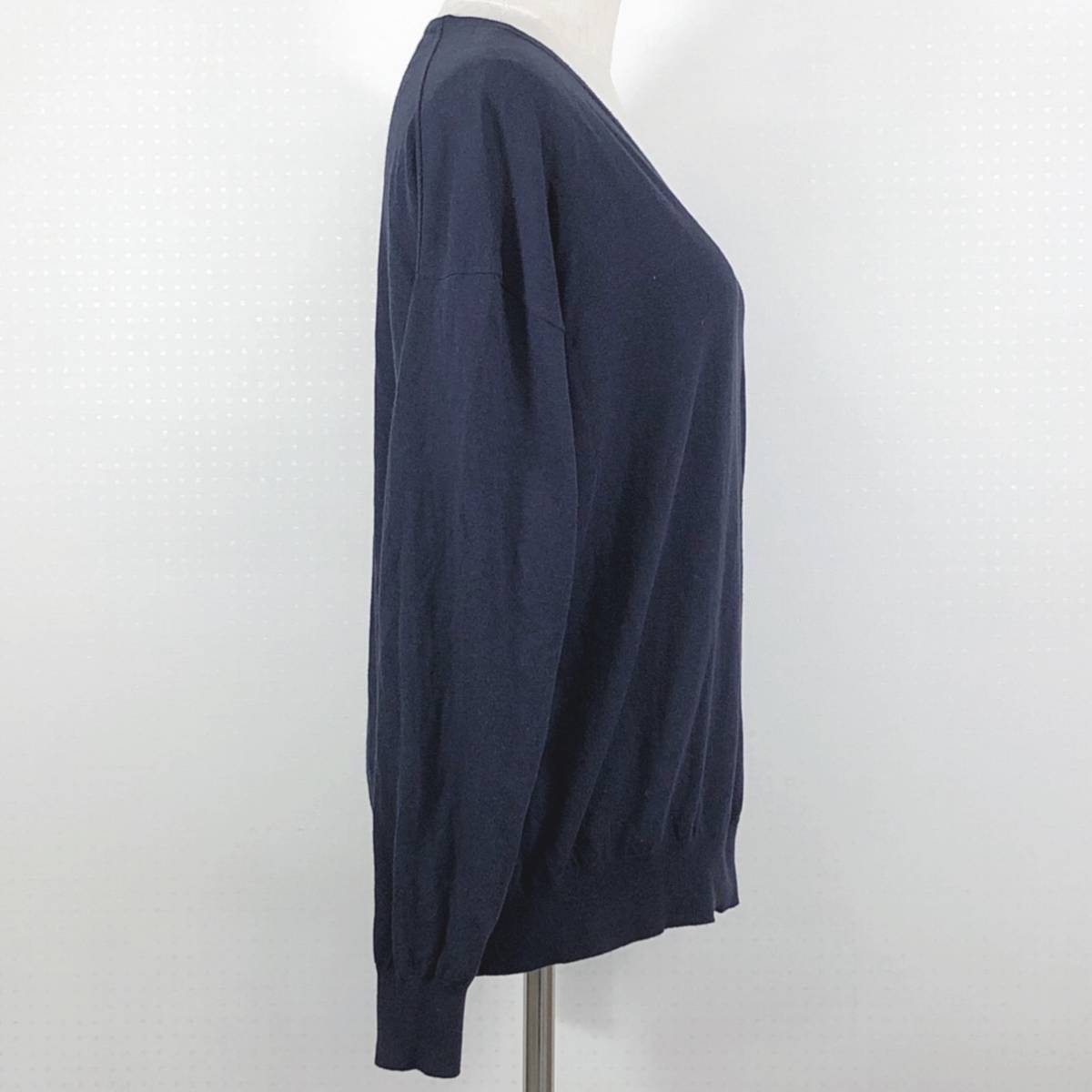 YX139 美品 EMM AJAMES レディース トップス ニット 長袖 Vネック L ネイビー 紺 無地 綿 キュプラ シック シンプル カジュアル 春秋