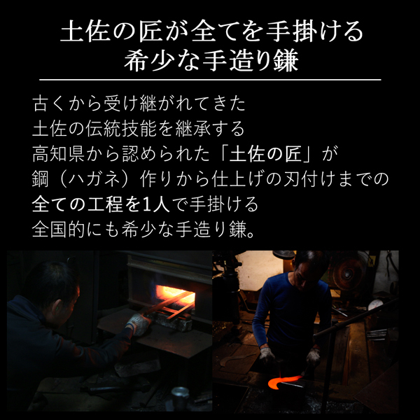 高知土佐でも屈指の腕を持つ鎌鍛冶が、精魂込めて鍛造火造りした厚鎌です