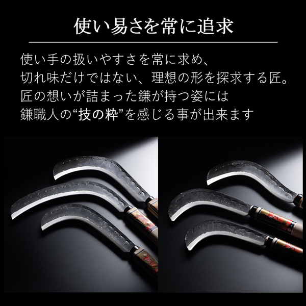 妥協を許さない高度な熟練技から生み出されたこだわりの鎌です