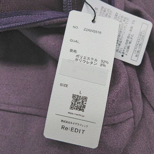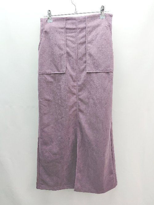 ◇ 新品 Re:EDIT スリット ウエストゴム サイドジップ 起毛 ロング丈 タイト スカート サイズL パープル系 レディース E