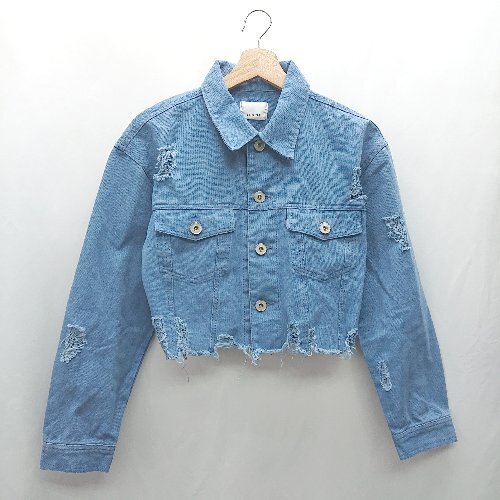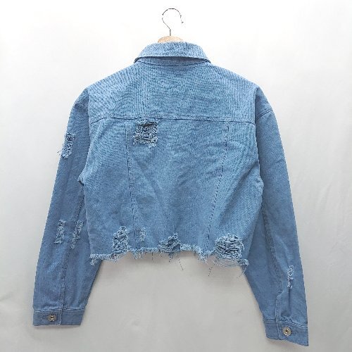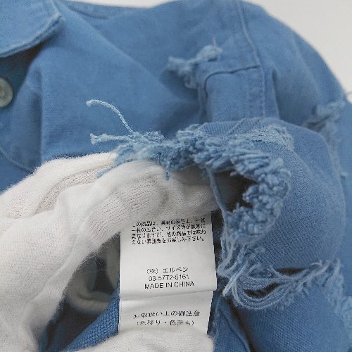 ◇ ⊇ EGOIST エゴイスト ダメージ加工 長袖 ジージャン サイズF ライトブルー レディース E