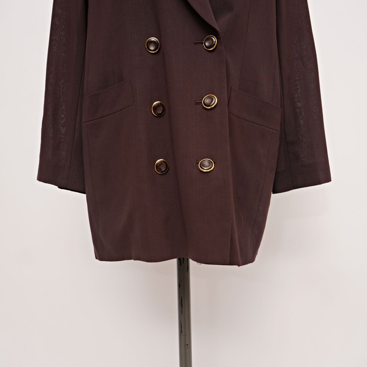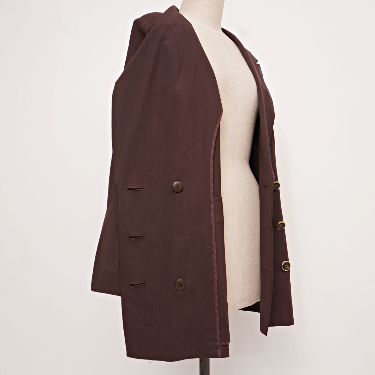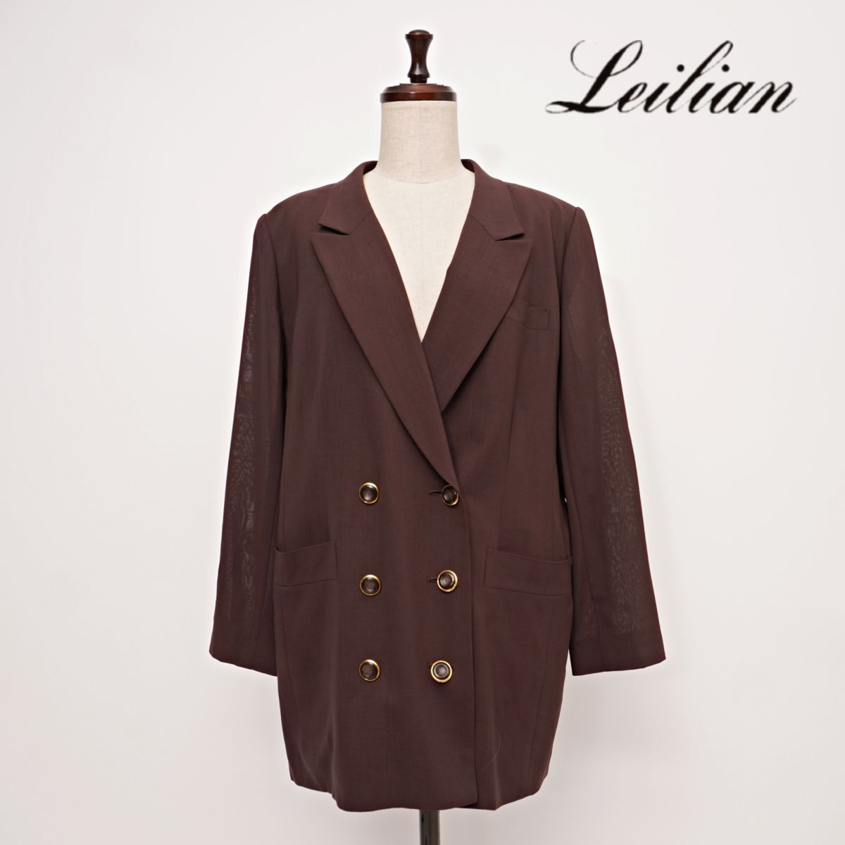 Leilian レリアン ウール100% テーラードジャケット 金ボタン ダブルブレスト 背抜き ブラウン 茶 レディース サイズ13 *XC2001