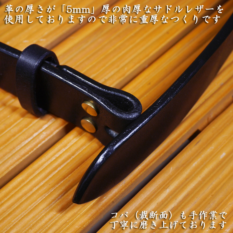 | 幅35mm 厚さ5mm極厚 黒革 多脂革 ブラックベルト 帯のみ バックル無し 完全オーダーメイド 栃木サドルレザー 馬具職人工房 | |