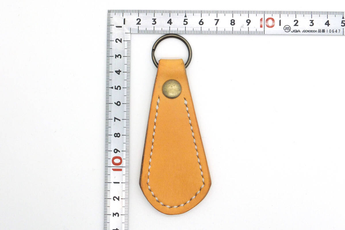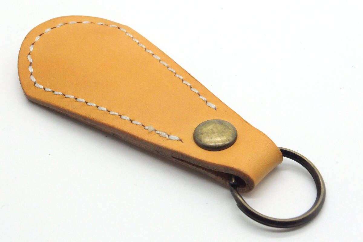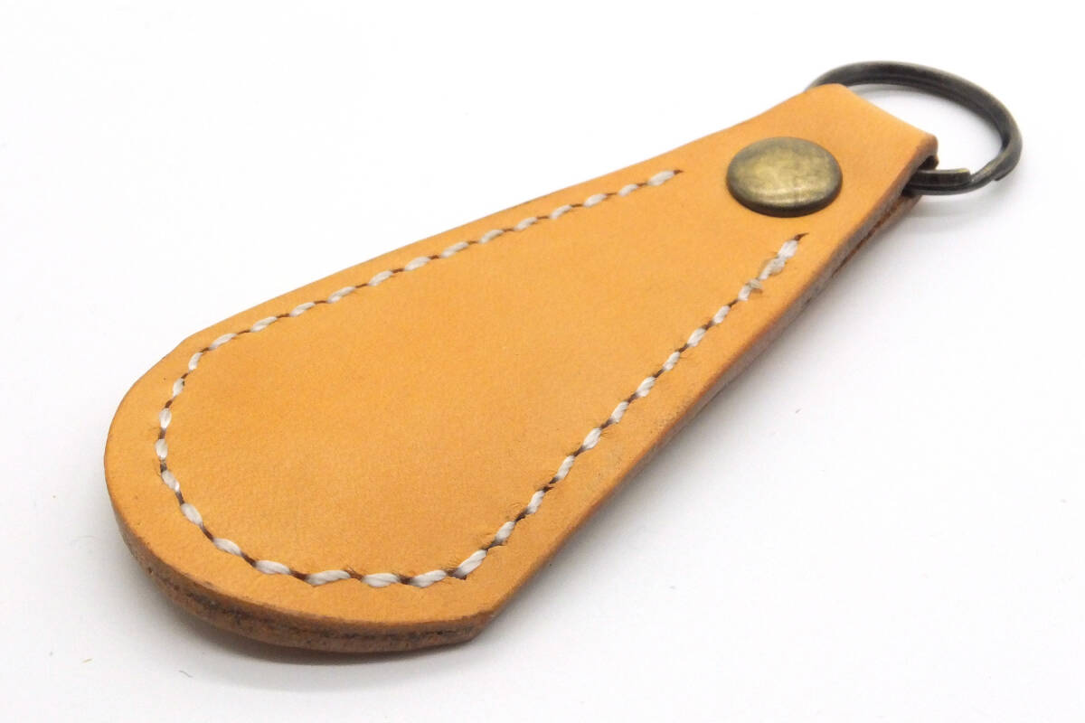 厚さ約1.5mmの100%植物タンニン鞣し牛本革で作った靴ベラのキーホルダーです。