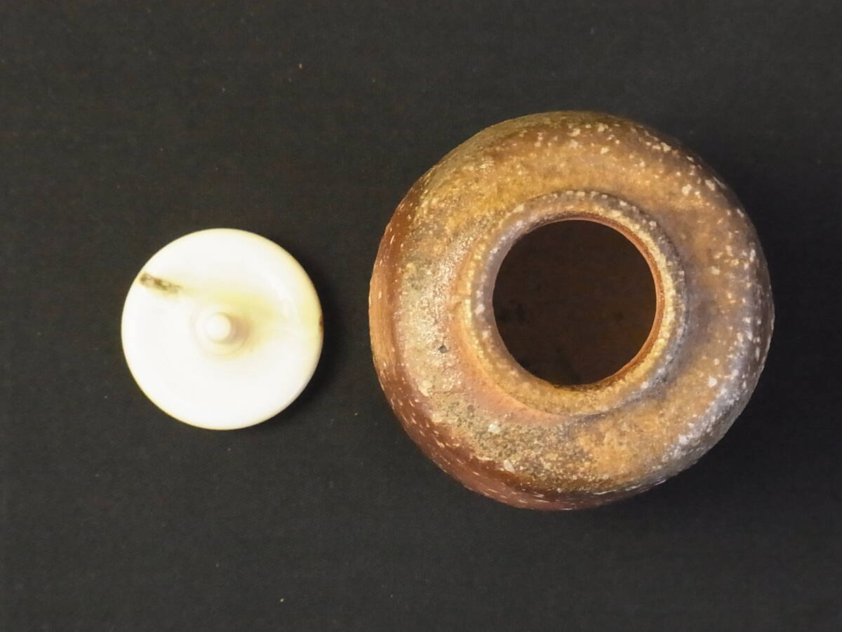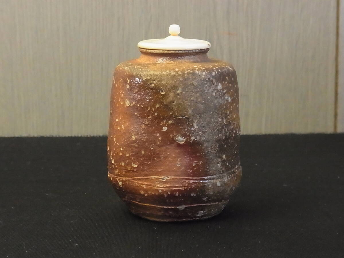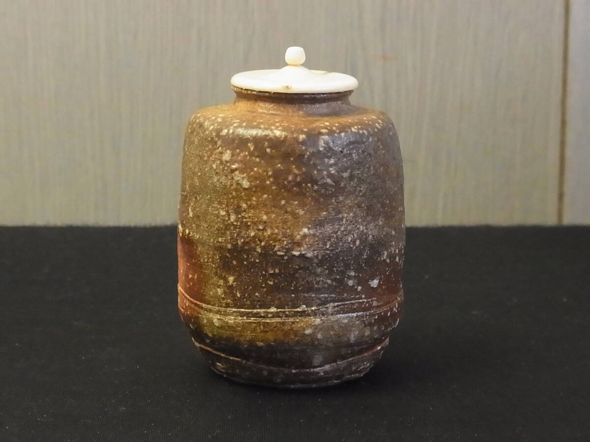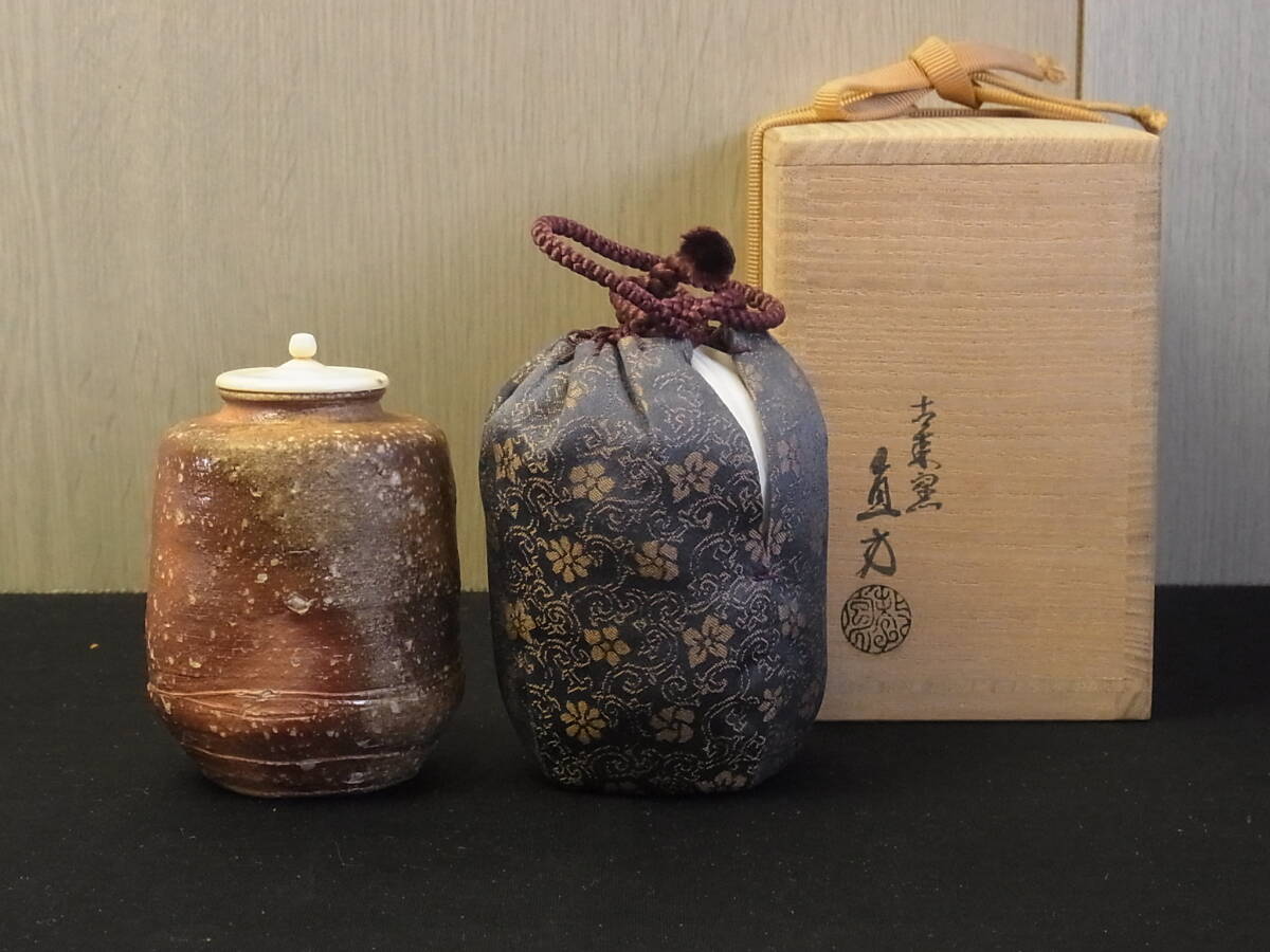 t1723 蔵出 茶道具 上田直方 信楽茶入 替え仕覆付 在銘 共箱 陶芸 茶器 伝統工芸 信楽焼 骨董