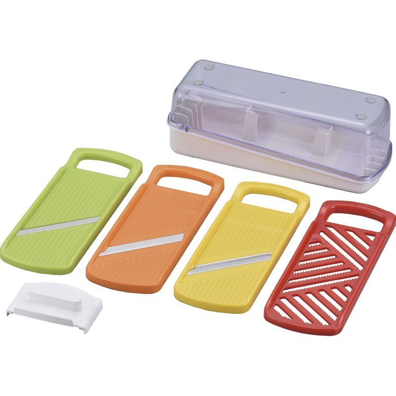【セット内容】スライサー・千切り・つま切り・おろし・安全ホルダー・収納ケース(23.5×8.5×8.8cm)・容器×各1