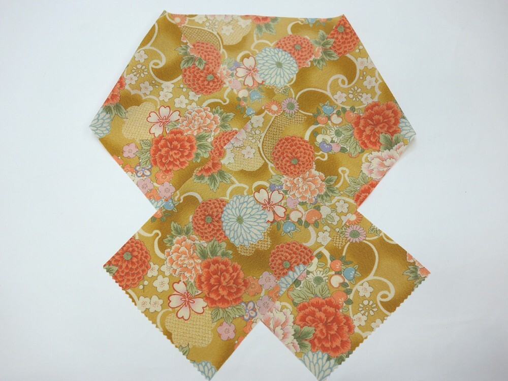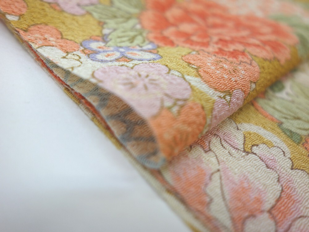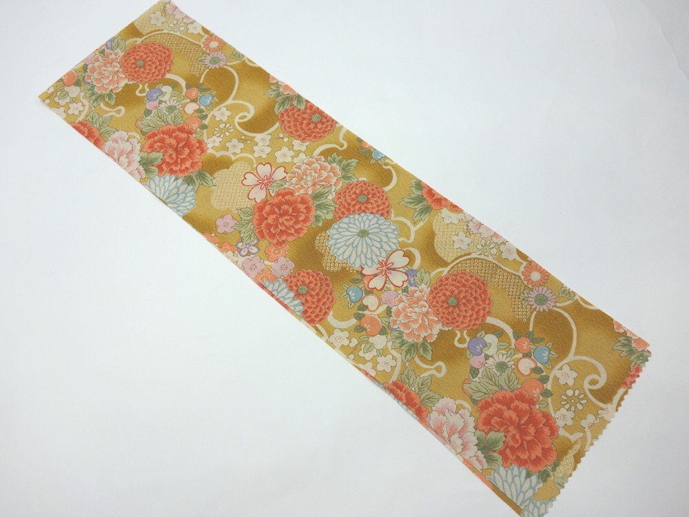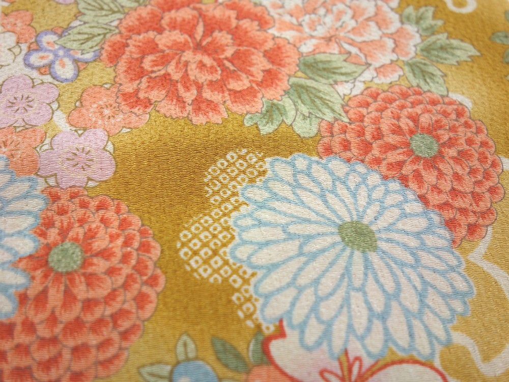 着物物語■K5612-20■未使用美品 半衿 花柄刺繍 ちりめん地 黄土色×カラフル