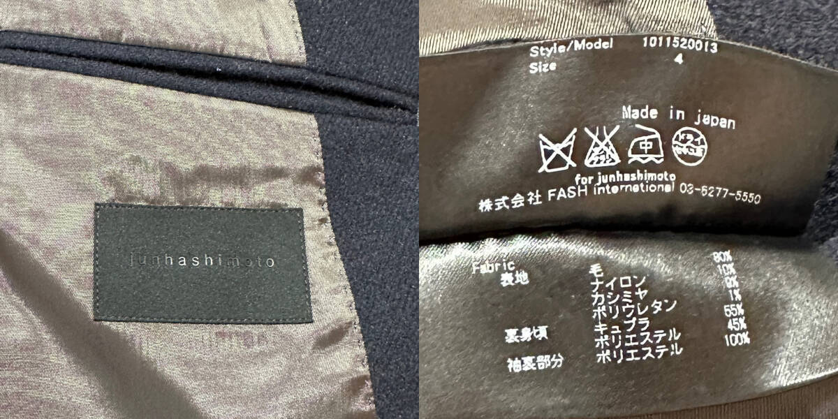 定価11万 junhashimoto WOOL CASHMERE 3D DOUBLE CHESTER COAT 4 紺 ジュンハシモト ダブルチェスターコート 1piu wjk akm