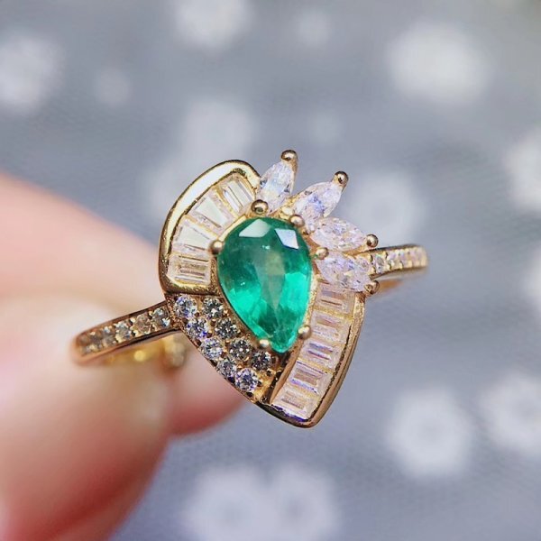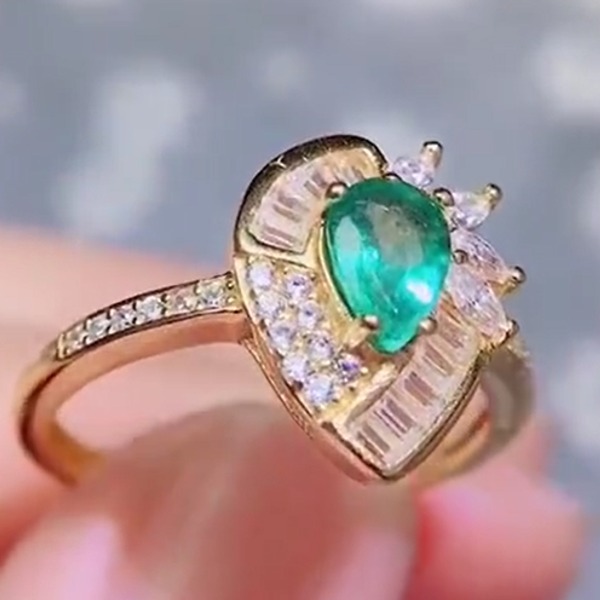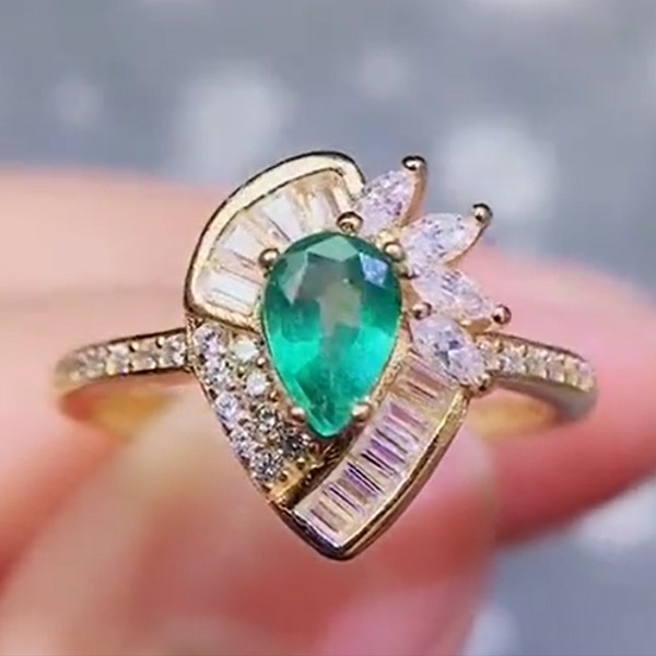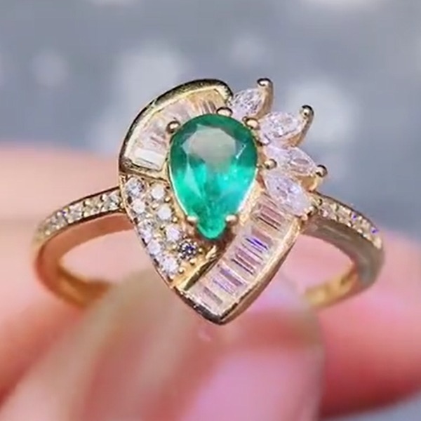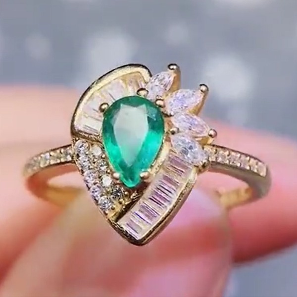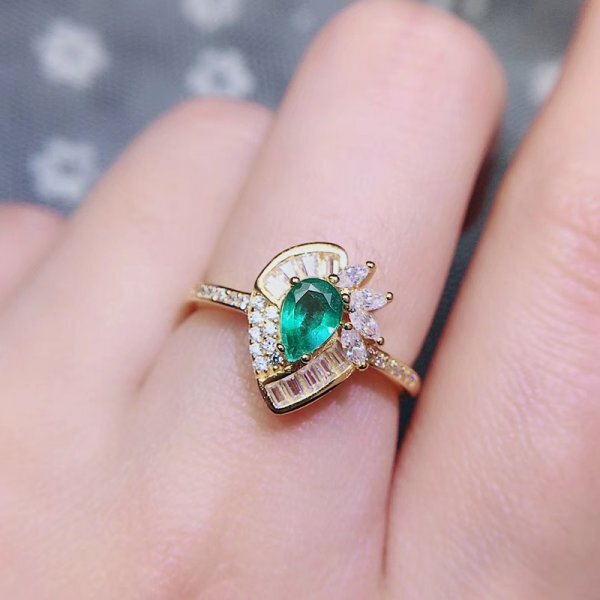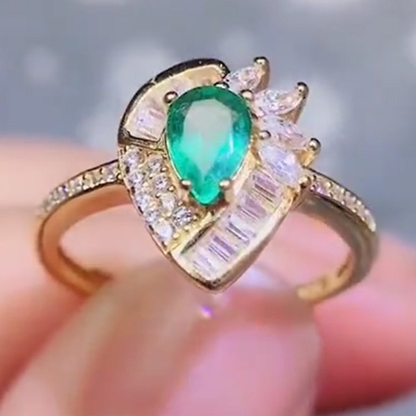 ナチュラルエメラルドリング、4×6mm、925シルバー、ジェムストーンジュエリー、お祝い用