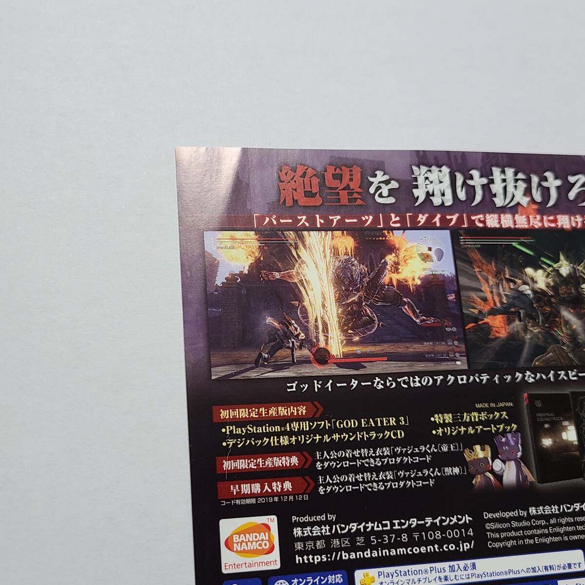 【非売品 店頭用ダミージャケットのみ】ゴッドイーター3 初回限定生産版 未使用 販促 告知 GOD EATER 初回版 ゲームグッズ PS4 ソフトなし