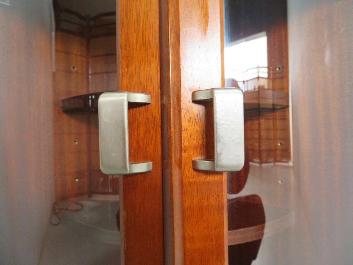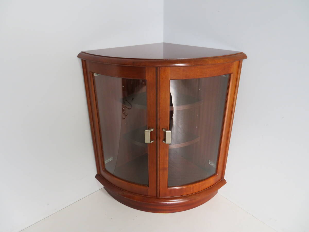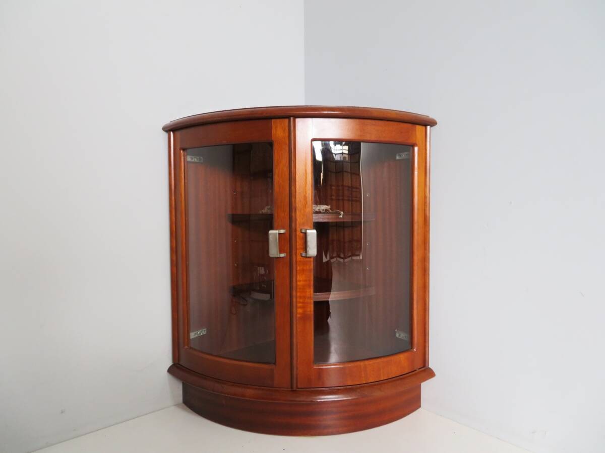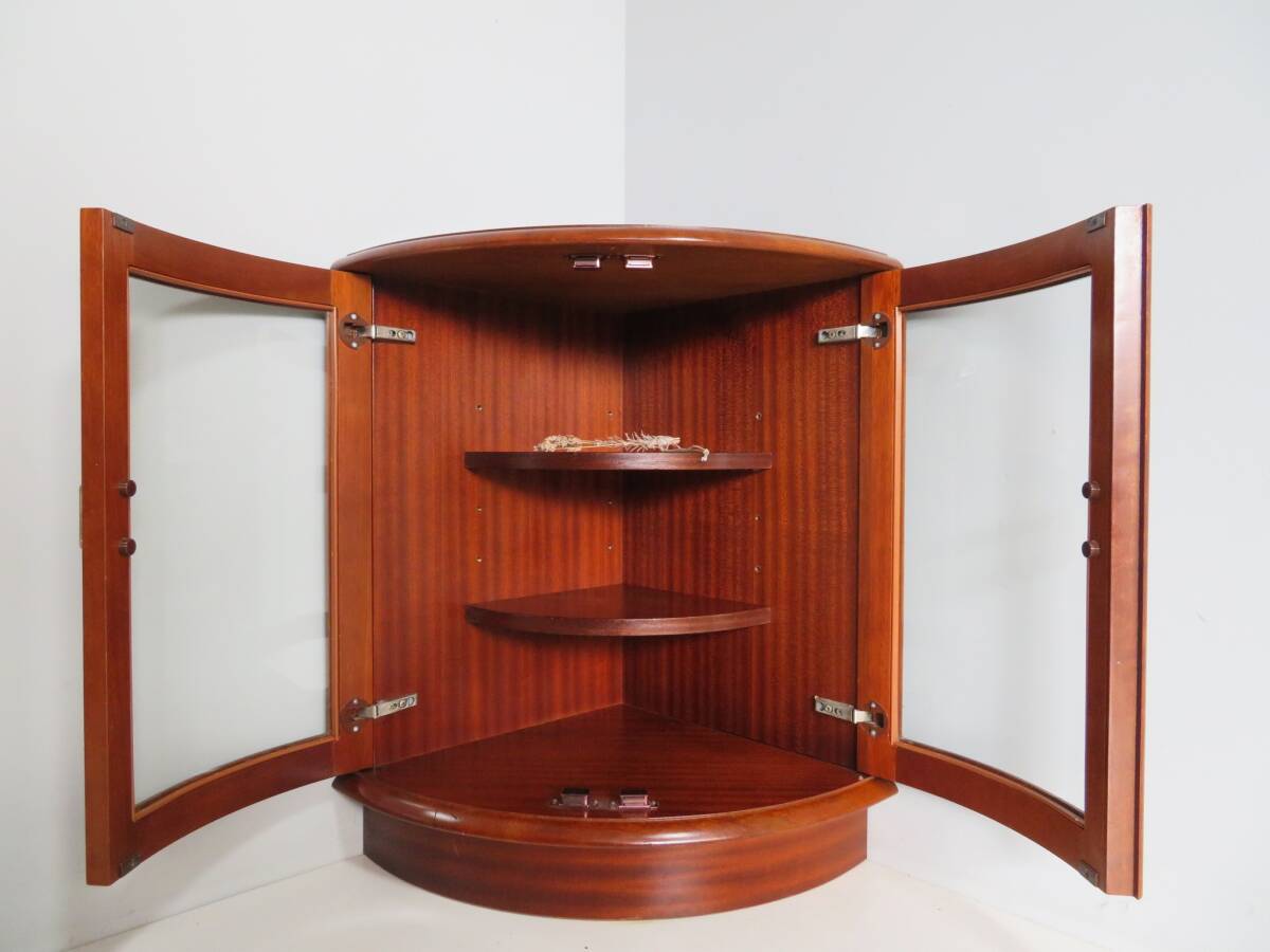 オールドカリモク コーナーキャビネット 飾り棚 食器棚 マホガニー材 湾曲ガラス