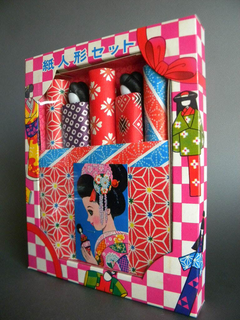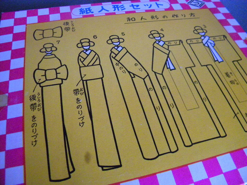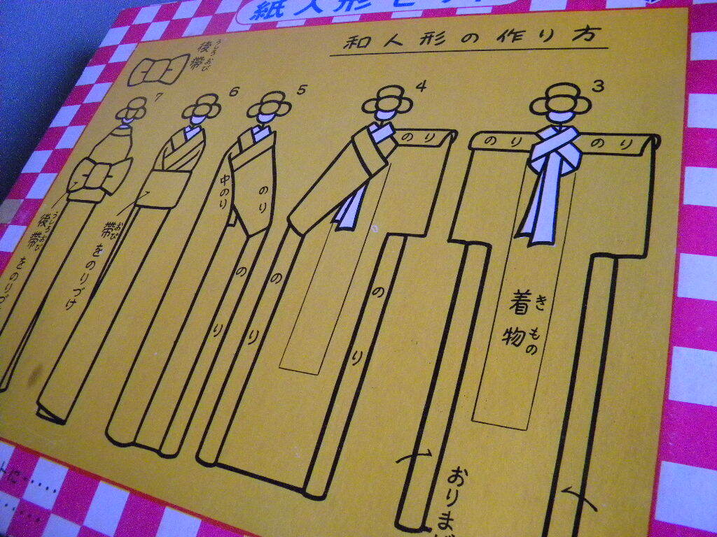 当時物 ★★日本人形 紙人形セット 少女玩具 !! 昭和40年代 折り紙 千代紙 着物 帯 おままごと「定形外/LP可」★★未使用 デッドストック 1