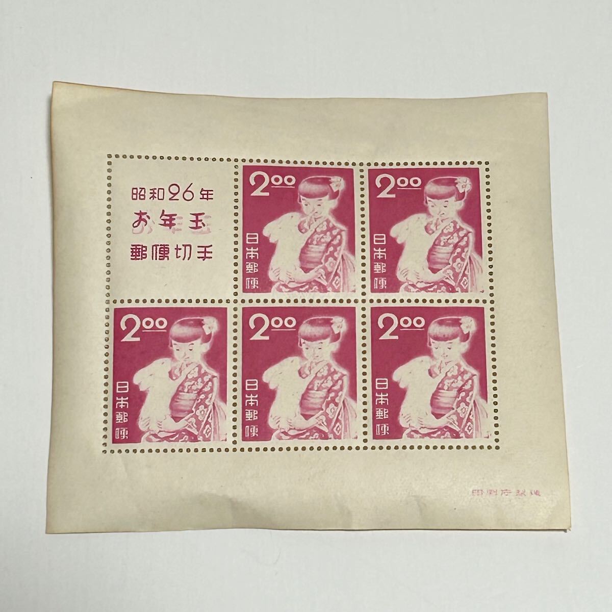 お年玉年賀切手 昭和26年 うさぎと少女 小型シート | |||