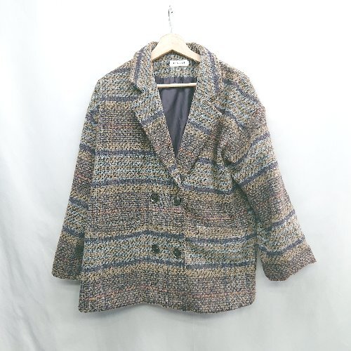 ◇ ⊇ JUNOAH ジュノア ツイード調 長袖 ピーコ―ト サイズM マルチ レディース E