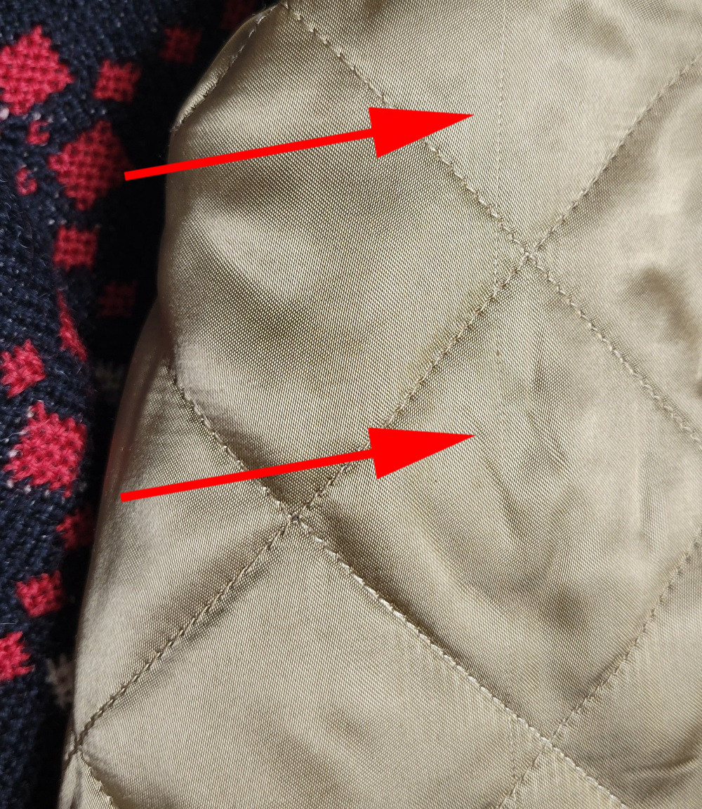 その他、品質タグに軽い折目、リブ等にうっすらと毛羽立ち、裏地に所々にシワが見受けられる等、全体的に使用感がございます。
