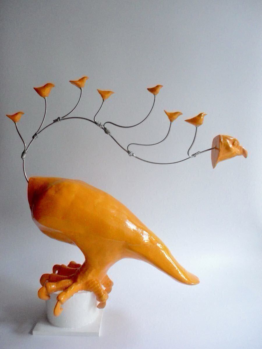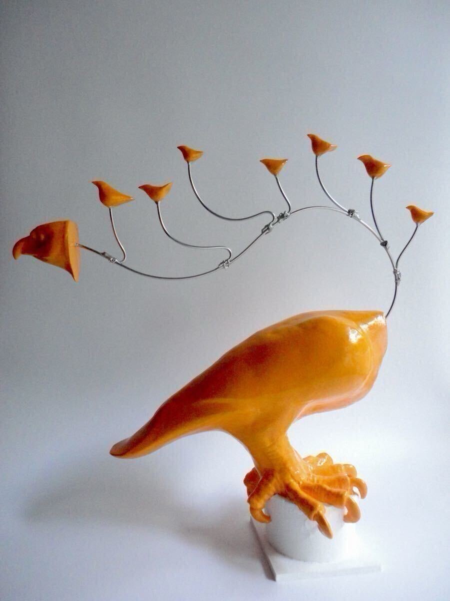| 制作年:2023 使用素材:石粉粘土 ステンレス針金 水性塗料(Materials used: stone powder clay, stainless steel wire, water-based paint, ) w150×d420×h420 1.5kg 「無題」シリース49作目、鷹の彫刻てす。 -作者略歴- 千葉和希(Kazuki Chiba) 1990年神奈川県横浜市生まれ 2014年多摩美術大学美術学部彫刻学科卒業 針金を素材にアーティスト活動をしています。 現在は量感と生命感をテーマに、軽い形と重い形の対比を感じるオブジェを作っています。 生き物が持つ生命の力が、針金として内側から飛び出します。 針金の性質は植物のように柔らかく、しかし 強靭です。 それは植物が持つ「生きる」という 純粋で不思議な姿勢を表しています。 グループ展 2012 六本木画廊 2014 ギャラリー・ルデコ 2019 金沢動物園アニマルアートコラボ展 2021 ピカレスクギャラリー 食べるの神様展 2021 金沢動物園 ののはな館 2022 GALLERY AND LINKS 81.one ART POINT Selection Ⅱ 専用の木枠と、ストレッチフィルム等を使った上、ダンボールを使用して梱包させて頂きます。 梱包にはリユース材を使います。 梱包の解体にはドライバー当の工具が必要になります。 作品の価格についてご相談承ります。 ご理解のほど宜しくお願いします。 他のフリマ、オークションサイトでも販売しておりますので 売り切れてしまった場合は予告なく削除致します。 過去作についてはプロフィールのHP等からご確認下さい。 無言、即購入歓迎です。 一点物のハンドメイド作品ですのでご理解のある方にご購入いただけますようお願いいたします。 #art #artwork #sculpture #sculptures #wireart #animal #animals #アート #彫刻 #オブジェ #美術 #芸術 #現代アート #ワイヤークラフト #創作 #粘土 #動物 #アニマル #油彩 #油絵の具 #針金 #ステンレス #美術品 #芸術品 | |||