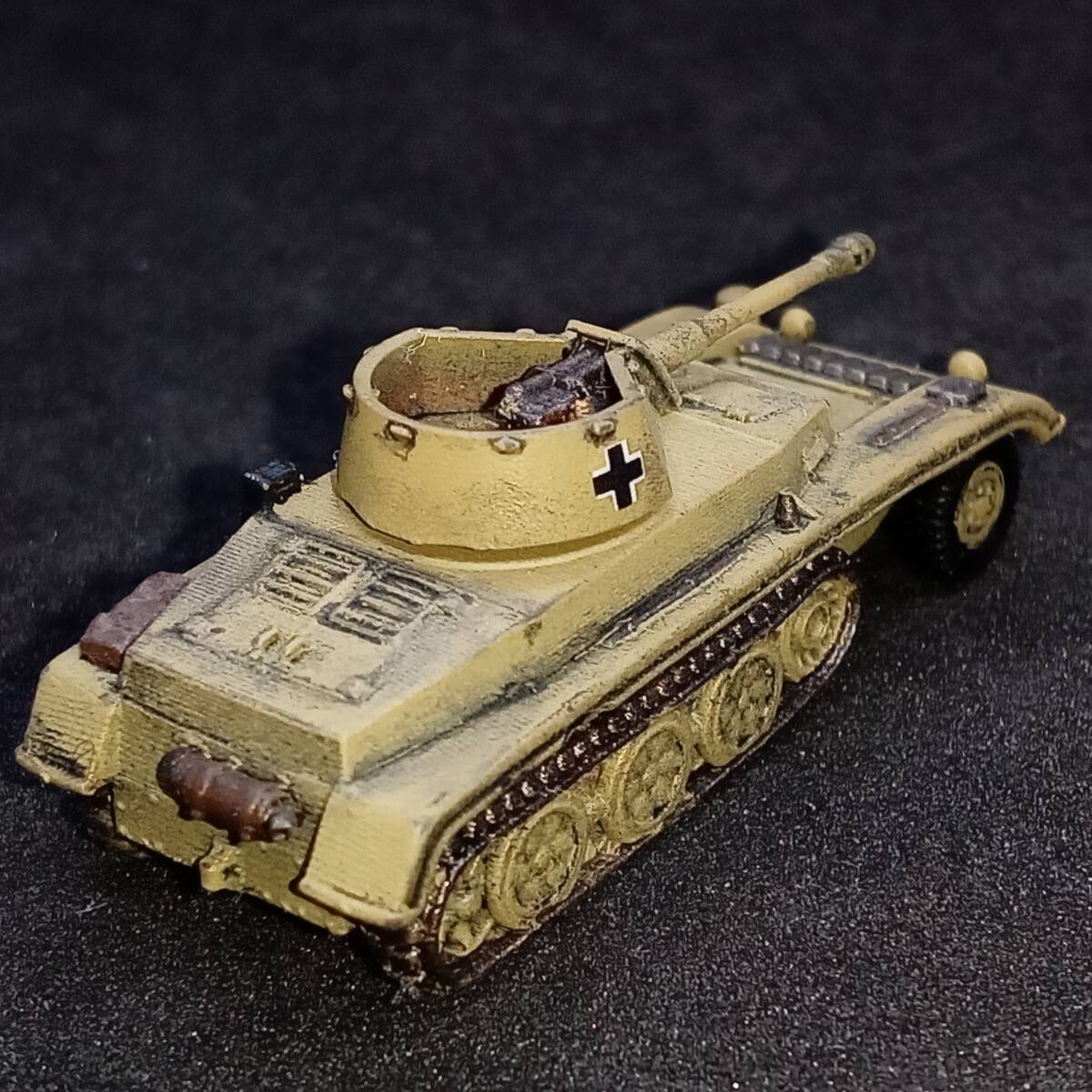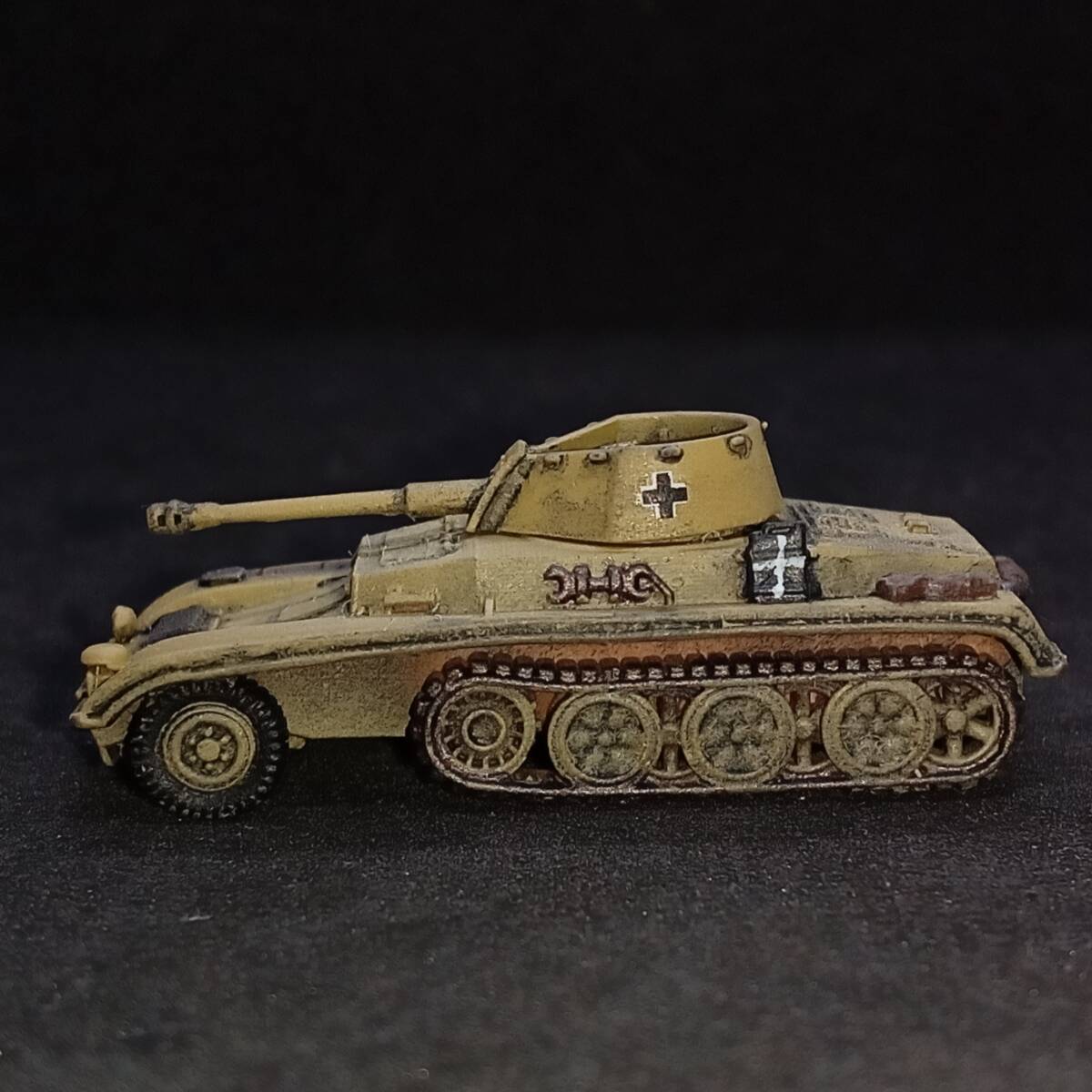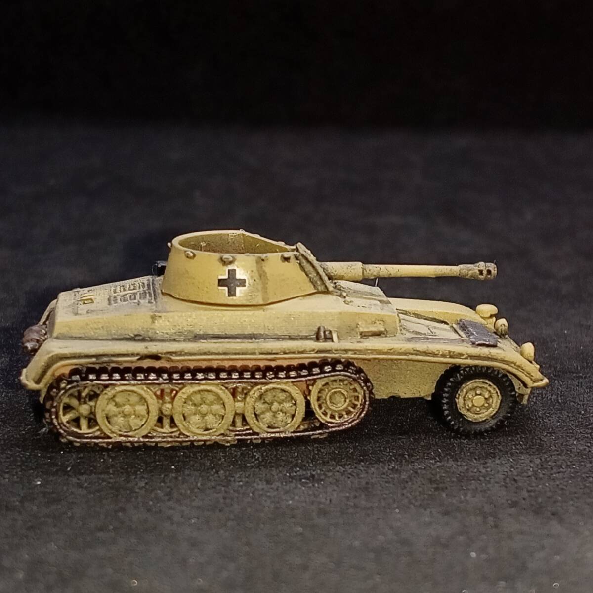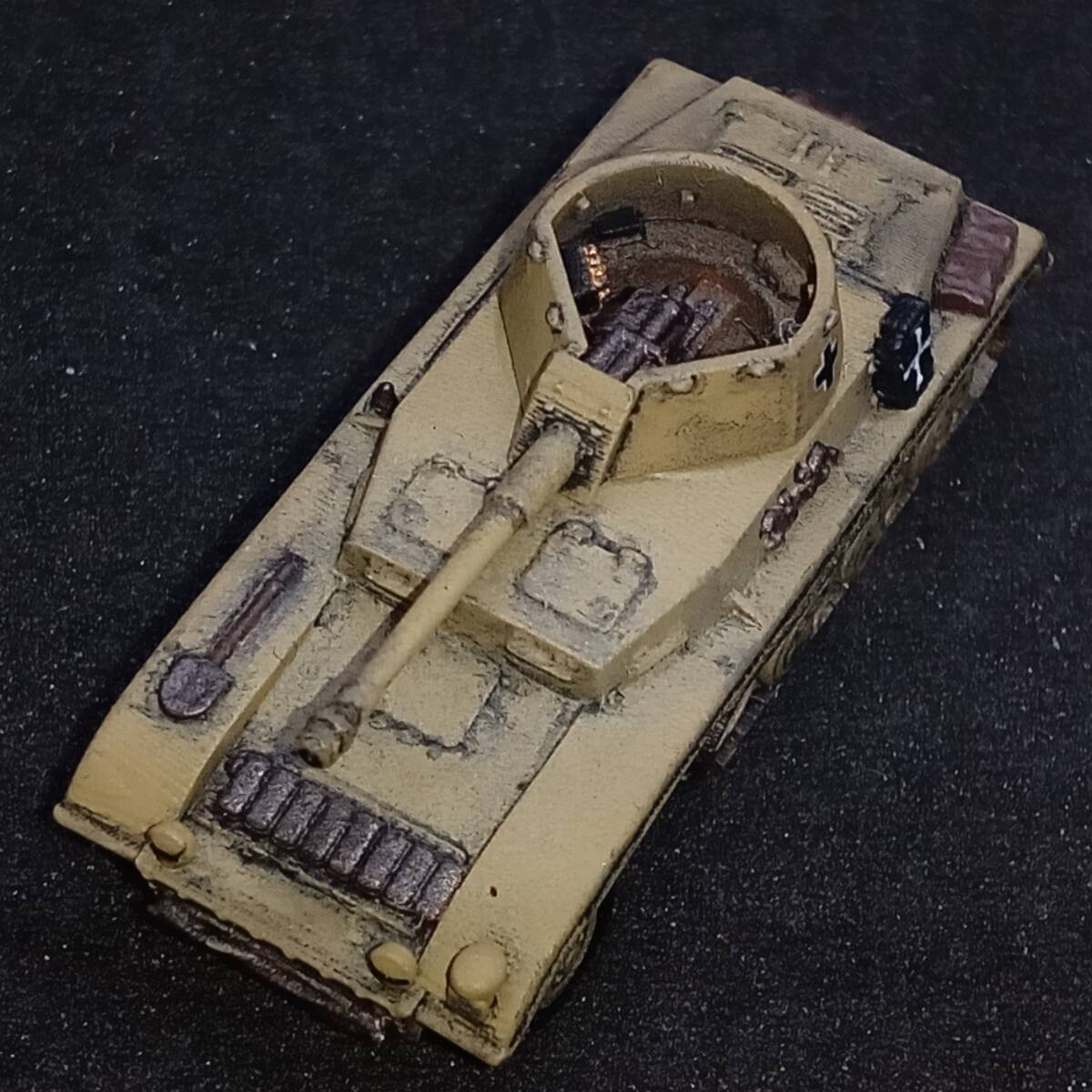 1.商品説明 完成品1/144 7.5cm砲自走車体2型,”激レアのハーフトラック自走砲!”,単色塗装,ドイツ,WW2,Blitz144製.自作ver 塗装済み完成品 出品者による自作。blitz144製(敬称略)の模型がベース。ラッカースプレーで基本塗装。筆塗りで補正。 スミ入れ、ウェザリング。つや消しトップコート。 【かんたん解説】 ドイツの自走砲。第二次世界大戦。半装軌車輛(ハーフトラック)。 戦前の 1936年からドイツでは 自走砲の開発がはじまっていた。 1941年、 ラインメタル・ボルジッヒ社による 本車の開発がはじまった。 5トン・ハーフトラックをベースに、 車体を装甲化、 オープン・トップの砲塔に 7.5cm砲を搭載した。 適度な装甲をもつ。 最大20mm厚なので、 2号戦車ていどの装甲。 5トン・ハーフトラックが ベースであることを考えたら、 これ以上の出来はありえない。 足回りにしか ハーフトラックの面影がないぐらい、 装甲戦闘車として 完成されたフォルム。 上面から観たら、 4号戦車や3号戦車かと 思えるぐらい。 側面から見ても、 装輪(タイヤ)がなければ 戦車かと思うぐらい。 7.5cm砲は 有名なPak40対戦車砲の流れではなく、 40.8口径7.5cm砲。 もともとが 15cm野砲であったものを 7.5cm砲に スケール・ダウンして改設計。 主砲は 1000mで62mmの装甲を貫通できる。 この距離でなら、 重装甲のマチルダ歩兵戦車でない限り、 他の戦車・装甲車輛を撃破できただろう。 1941年8月に完成。 この時期は バルバロッサ作戦(ソ連侵攻)が始まり。 ソ連侵攻は順調に進んでいる。 強力な装甲車輛は ドイツ軍内でも、ほとんど無い。 本車のような車輛が 複数、並行して開発され、 登場し始めた時期。 本車が完成した まさにその月に 激戦がはじまる 北アフリカ戦線では ロンメルが指揮する ドイツ・アフリカ軍団(DAK)が 正式に発足した。 2輌の試作車がともに 北アフリカ戦線へ 送られることが決定。 当時、 北アフリカ戦線には 新型の自走砲がかなり種類、 優先的に送られていた。 これからの熱い激戦がはじまる。 本車は 第605対戦車大隊の指揮下に入る。 1942年1月から戦闘に入ったが、 8月までに2輌とも戦闘で喪失。 北アフリカ戦線は損耗が激しい。 後続して生産されることはなかった。 2輌という数や、 珍しいオープントップ砲塔の 装甲ハーフトラック自走砲という点で 激レアの車輛である。 おひとついかが? 2.注意事項 2-1. 評価の悪い御方、神経質な御方はご遠慮下さい。 入札されても、出品者の判断でキャンセル(落札者都合)する場合がございます。 2-2. 落札後2日以内の連絡、4日以内のお支払い願います。 ご連絡・お支払が確認できない場合、落札者都合のキャンセルとさせていただきます。 2-3. ノークレーム・ノーリターンでお願いいたします。 実物とパソコン・スマホの商品画像で印象が異なる場合もございます。 完成品の場合は個人によるハンドペイントのため、レジンキットの場合も材質上、個体差があります。 梱包は厳密を期しますが、輸送中の事故による破損はご自分で修理願います。 3.発送方法 ゆうパケット(おてがる版)か宅急便コンパクトで。ゆうパックおてがる版も対応いたします。 お支払後3日以内に発送いたします。2023/10/04時点での配送料。 3-1. ゆうパケットおてがる版 全国一律230円! 匿名発送。追跡サービス付き。 ポストに直接届きます。配達時間気にせずに! 模型本体のみ発送となります。パケット箱が小型なので模型の外装プラケースは取り外します。 同梱・取り置き対応できません。 3-2. 宅急便コンパクト ゆうパックより安く。 匿名発送。追跡サービス付き。 配達時間指定OK!補償付き。 同梱対応可能です(3個程度まで)。取り置きも可能です(1週間程度)。 宅急便コンパクト発送費。(神奈川県より発送) 700円 【北海道】北海道 540円 【東北1】青森、岩手、秋田 480円 【東北2】山形、宮城、福島 〃 【関東】茨城、栃木、群馬、埼玉、千葉、東京、神奈川、山梨 〃 【信越】新潟、長野 【北陸】富山、石川、福井 〃 【東海】静岡、愛知、岐阜、三重 540円 【近畿】滋賀、京都、大阪、兵庫、奈良、和歌山 590円 【中国】鳥取、岡山、島根、広島、山口 【四国】香川、徳島、愛媛、高知 700円 【九州】福岡、佐賀、大分、熊本、長崎、宮崎、鹿児島 【沖縄】沖縄 3-3. ゆうパック(おてがる版) 4個以上の同梱なら、ゆうパック(おてがる版)がお勧めです。1個からでも承ります。 送料750円~1250円(60サイズの場合)。神奈川県からの発送。受取地が近いほど安くなります。 匿名発送。追跡サービス。補償付き。 6個程度までなら60サイズ(ゆうパック最小サイズ)対応。それ以上のサイズは相談にお時間いただきます。 4.支払方法 ヤフーかんたん決済のみです。 | |