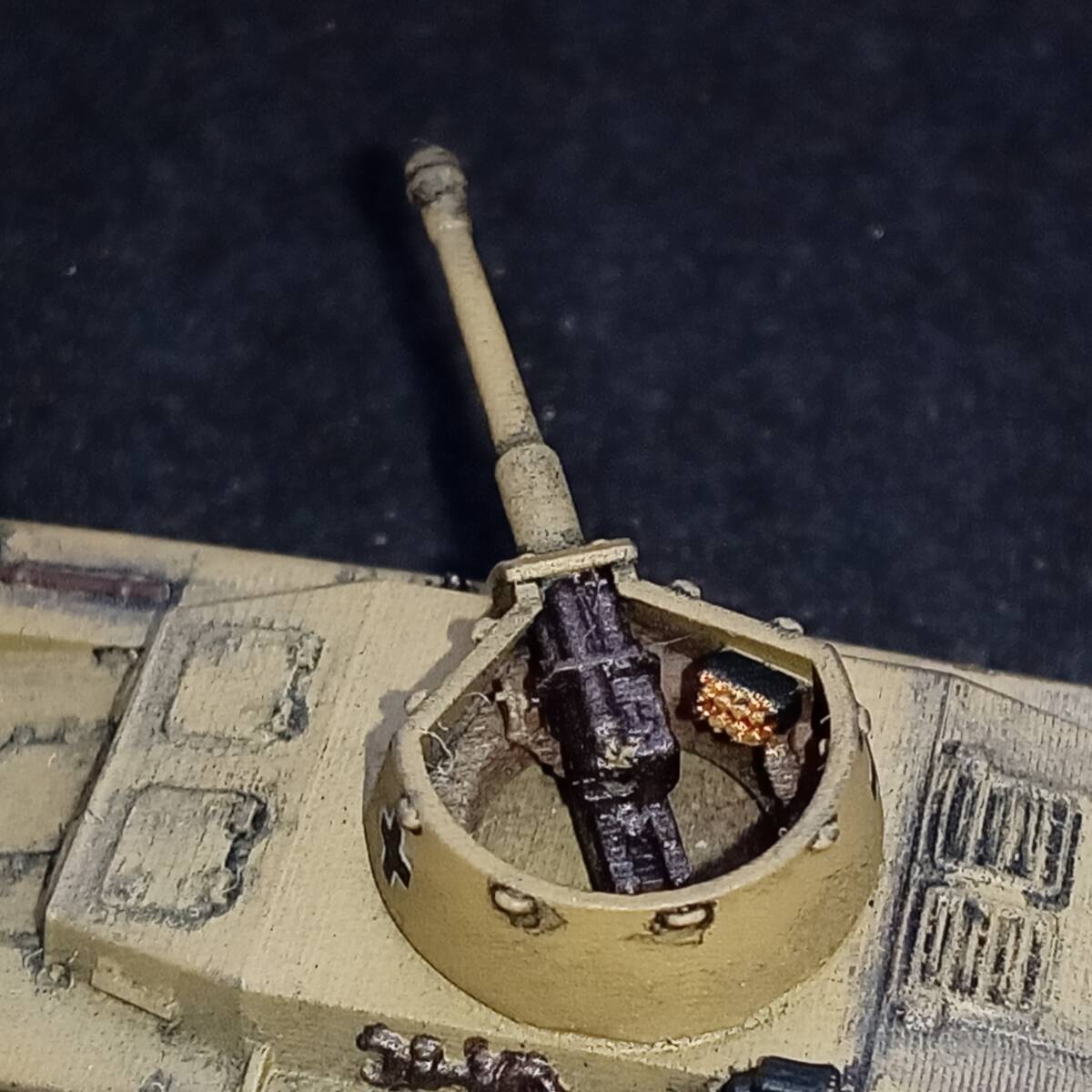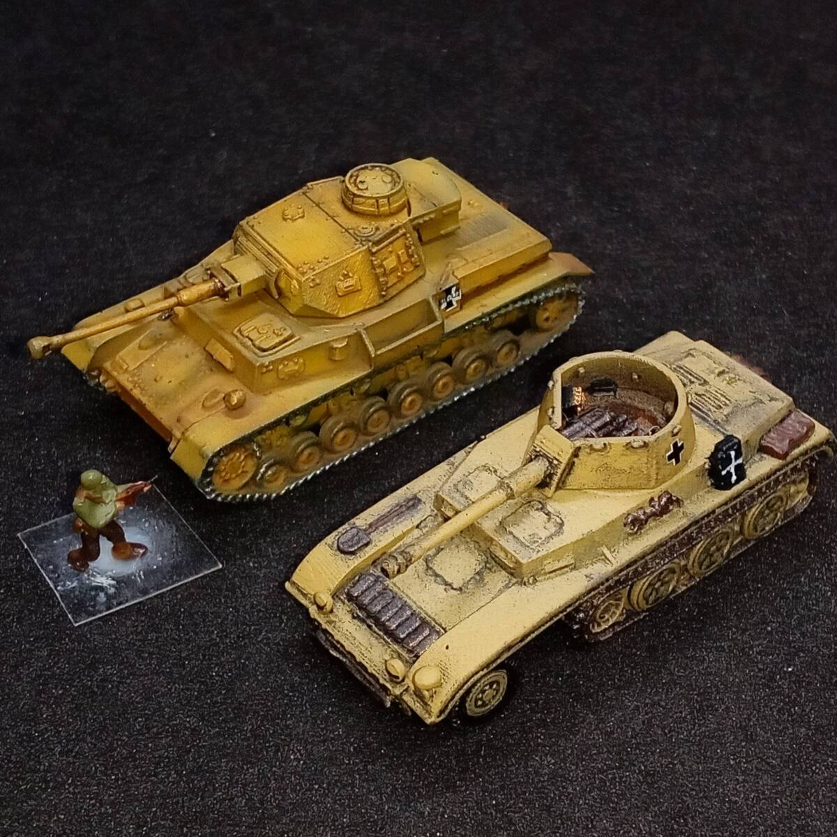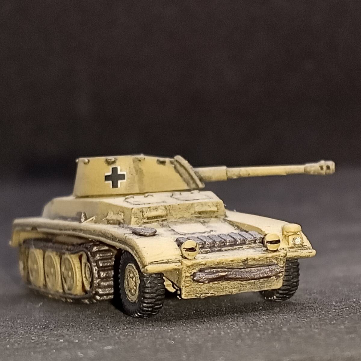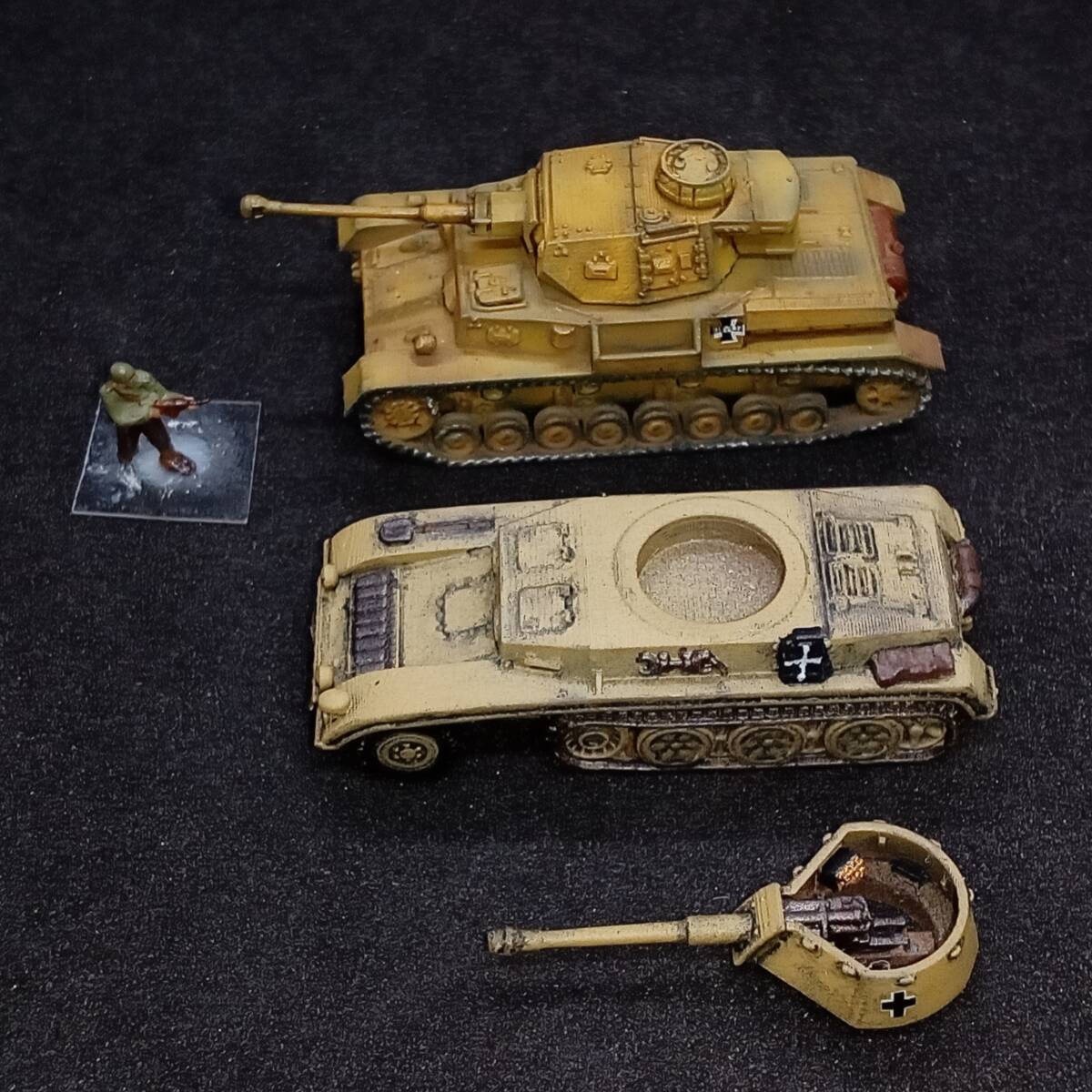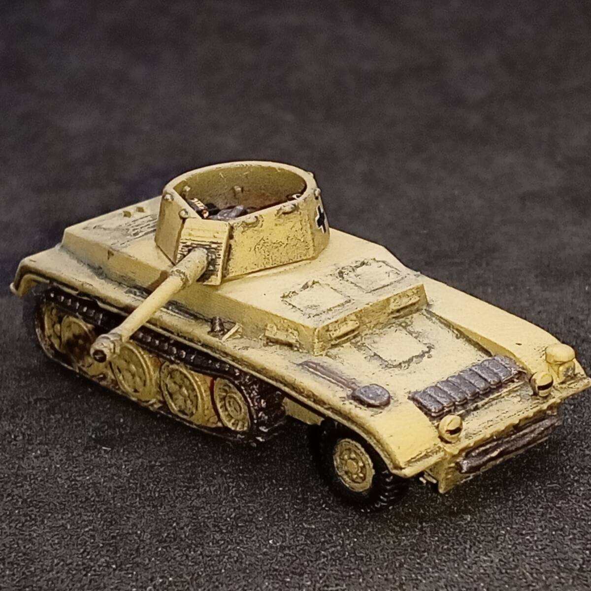 1.商品説明 完成品1/144 7.5cm砲自走車体2型,”激レアのハーフトラック自走砲!”,単色塗装,ドイツ,WW2,Blitz144製.自作ver 塗装済み完成品 出品者による自作。blitz144製(敬称略)の模型がベース。ラッカースプレーで基本塗装。筆塗りで補正。 スミ入れ、ウェザリング。つや消しトップコート。 【かんたん解説】 ドイツの自走砲。第二次世界大戦。半装軌車輛(ハーフトラック)。 戦前の 1936年からドイツでは 自走砲の開発がはじまっていた。 1941年、 ラインメタル・ボルジッヒ社による 本車の開発がはじまった。 5トン・ハーフトラックをベースに、 車体を装甲化、 オープン・トップの砲塔に 7.5cm砲を搭載した。 適度な装甲をもつ。 最大20mm厚なので、 2号戦車ていどの装甲。 5トン・ハーフトラックが ベースであることを考えたら、 これ以上の出来はありえない。 足回りにしか ハーフトラックの面影がないぐらい、 装甲戦闘車として 完成されたフォルム。 上面から観たら、 4号戦車や3号戦車かと 思えるぐらい。 側面から見ても、 装輪(タイヤ)がなければ 戦車かと思うぐらい。 7.5cm砲は 有名なPak40対戦車砲の流れではなく、 40.8口径7.5cm砲。 もともとが 15cm野砲であったものを 7.5cm砲に スケール・ダウンして改設計。 主砲は 1000mで62mmの装甲を貫通できる。 この距離でなら、 重装甲のマチルダ歩兵戦車でない限り、 他の戦車・装甲車輛を撃破できただろう。 1941年8月に完成。 この時期は バルバロッサ作戦(ソ連侵攻)が始まり。 ソ連侵攻は順調に進んでいる。 強力な装甲車輛は ドイツ軍内でも、ほとんど無い。 本車のような車輛が 複数、並行して開発され、 登場し始めた時期。 本車が完成した まさにその月に 激戦がはじまる 北アフリカ戦線では ロンメルが指揮する ドイツ・アフリカ軍団(DAK)が 正式に発足した。 2輌の試作車がともに 北アフリカ戦線へ 送られることが決定。 当時、 北アフリカ戦線には 新型の自走砲がかなり種類、 優先的に送られていた。 これからの熱い激戦がはじまる。 本車は 第605対戦車大隊の指揮下に入る。 1942年1月から戦闘に入ったが、 8月までに2輌とも戦闘で喪失。 北アフリカ戦線は損耗が激しい。 後続して生産されることはなかった。 2輌という数や、 珍しいオープントップ砲塔の 装甲ハーフトラック自走砲という点で 激レアの車輛である。 おひとついかが? 2.注意事項 2-1. 評価の悪い御方、神経質な御方はご遠慮下さい。 入札されても、出品者の判断でキャンセル(落札者都合)する場合がございます。 2-2. 落札後2日以内の連絡、4日以内のお支払い願います。 ご連絡・お支払が確認できない場合、落札者都合のキャンセルとさせていただきます。 2-3. ノークレーム・ノーリターンでお願いいたします。 実物とパソコン・スマホの商品画像で印象が異なる場合もございます。 完成品の場合は個人によるハンドペイントのため、レジンキットの場合も材質上、個体差があります。 梱包は厳密を期しますが、輸送中の事故による破損はご自分で修理願います。 3.発送方法 ゆうパケット(おてがる版)か宅急便コンパクトで。ゆうパックおてがる版も対応いたします。 お支払後3日以内に発送いたします。2023/10/04時点での配送料。 3-1. ゆうパケットおてがる版 全国一律230円! 匿名発送。追跡サービス付き。 ポストに直接届きます。配達時間気にせずに! 模型本体のみ発送となります。パケット箱が小型なので模型の外装プラケースは取り外します。 同梱・取り置き対応できません。 3-2. 宅急便コンパクト ゆうパックより安く。 匿名発送。追跡サービス付き。 配達時間指定OK!補償付き。 同梱対応可能です(3個程度まで)。取り置きも可能です(1週間程度)。 宅急便コンパクト発送費。(神奈川県より発送) 700円 【北海道】北海道 540円 【東北1】青森、岩手、秋田 480円 【東北2】山形、宮城、福島 〃 【関東】茨城、栃木、群馬、埼玉、千葉、東京、神奈川、山梨 〃 【信越】新潟、長野 【北陸】富山、石川、福井 〃 【東海】静岡、愛知、岐阜、三重 540円 【近畿】滋賀、京都、大阪、兵庫、奈良、和歌山 590円 【中国】鳥取、岡山、島根、広島、山口 【四国】香川、徳島、愛媛、高知 700円 【九州】福岡、佐賀、大分、熊本、長崎、宮崎、鹿児島 【沖縄】沖縄 3-3. ゆうパック(おてがる版) 4個以上の同梱なら、ゆうパック(おてがる版)がお勧めです。1個からでも承ります。 送料750円~1250円(60サイズの場合)。神奈川県からの発送。受取地が近いほど安くなります。 匿名発送。追跡サービス。補償付き。 6個程度までなら60サイズ(ゆうパック最小サイズ)対応。それ以上のサイズは相談にお時間いただきます。 4.支払方法 ヤフーかんたん決済のみです。 | |