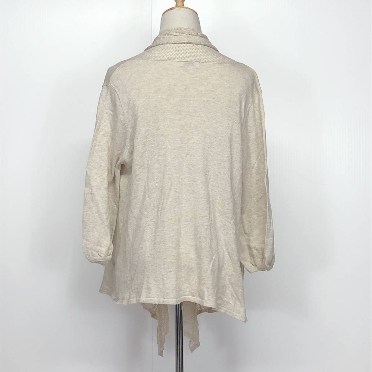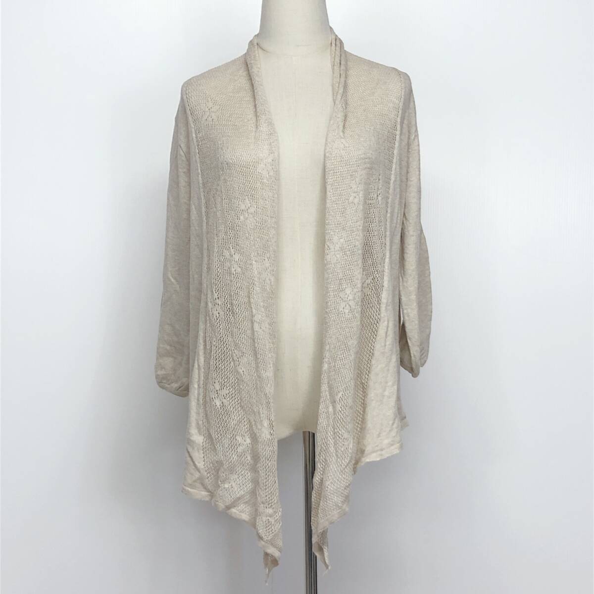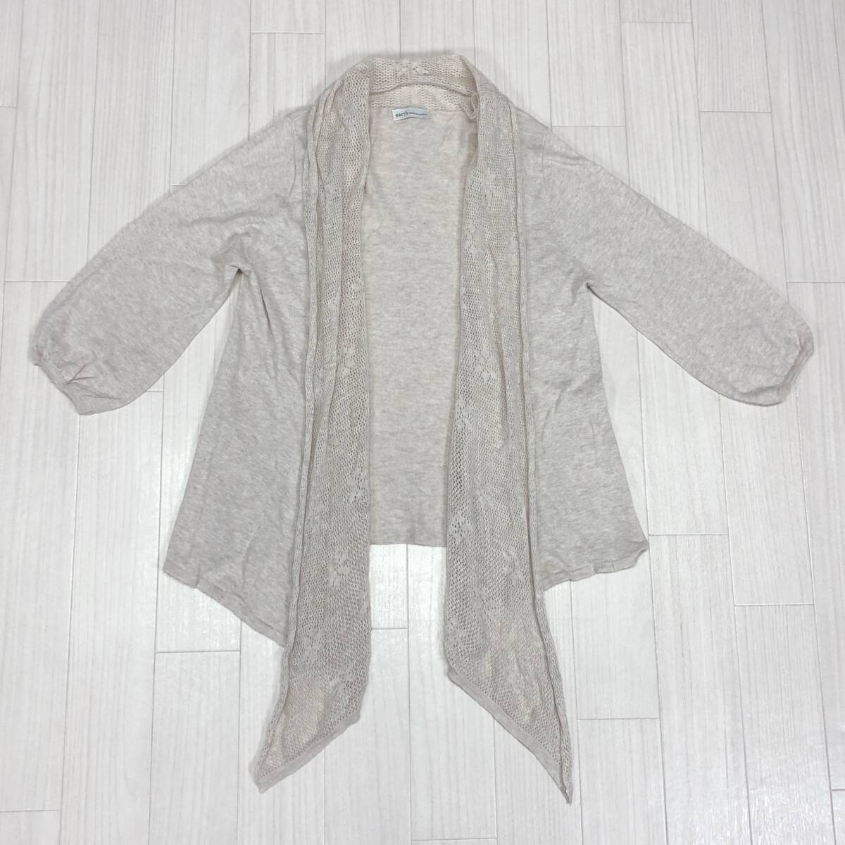 YX1110 earth music&ecologyレディーストップスカーディガン長袖 薄手 伸縮性 サイズF アイボリー 綿100% シンプル おしゃれ かわいい 春秋