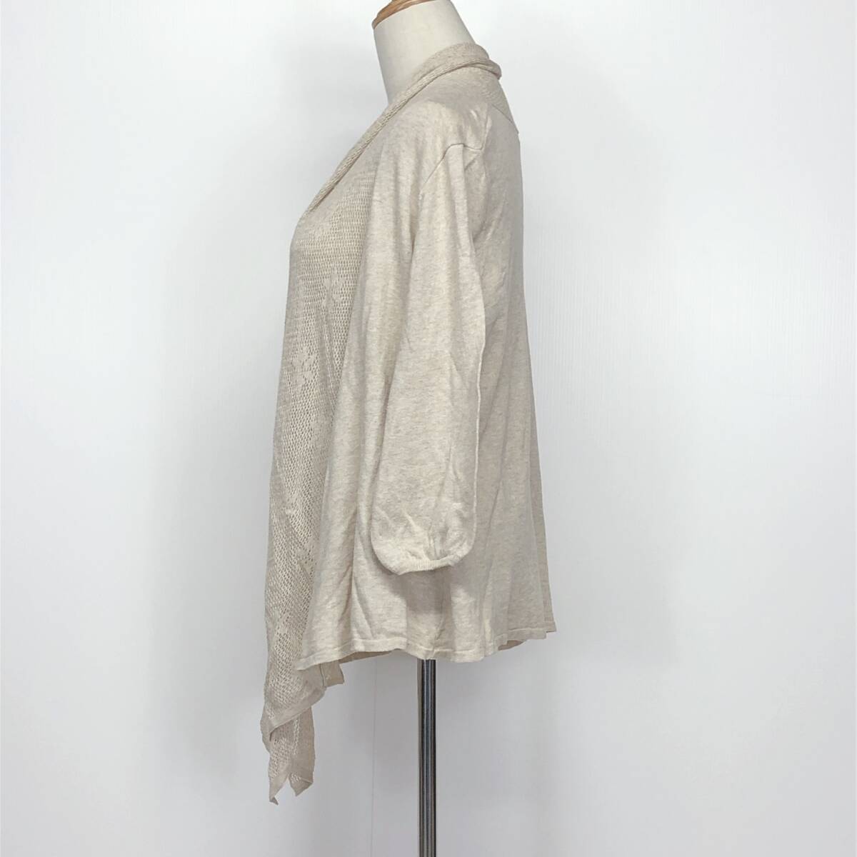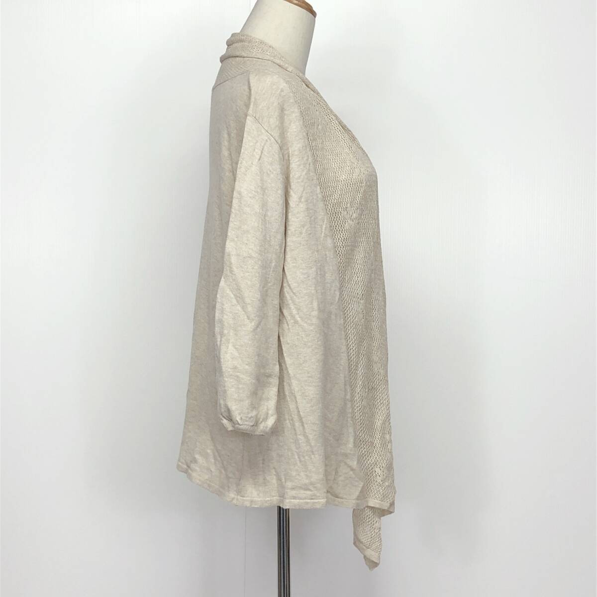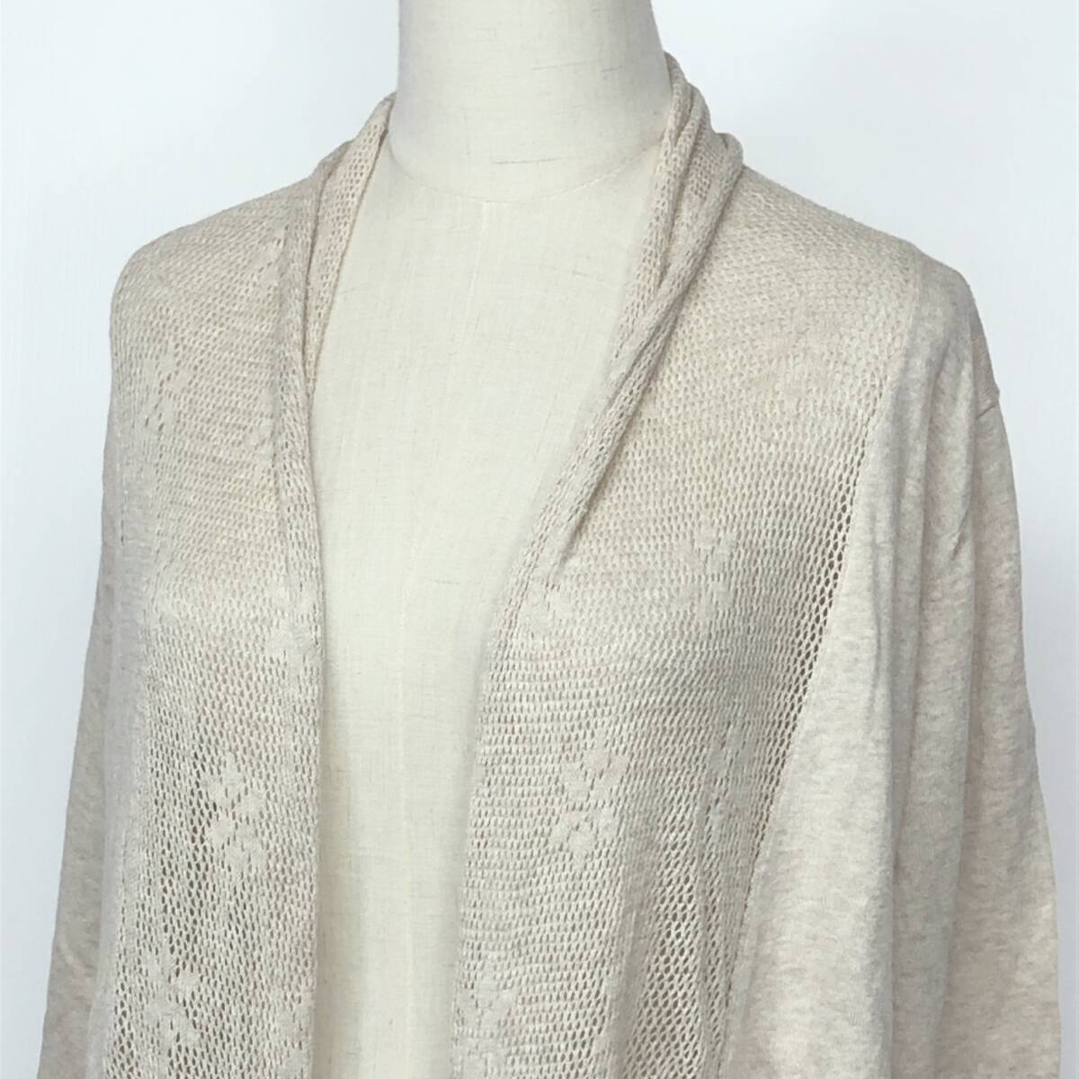 YX1110 earth music&ecologyレディーストップスカーディガン長袖 薄手 伸縮性 サイズF アイボリー 綿100% シンプル おしゃれ かわいい 春秋