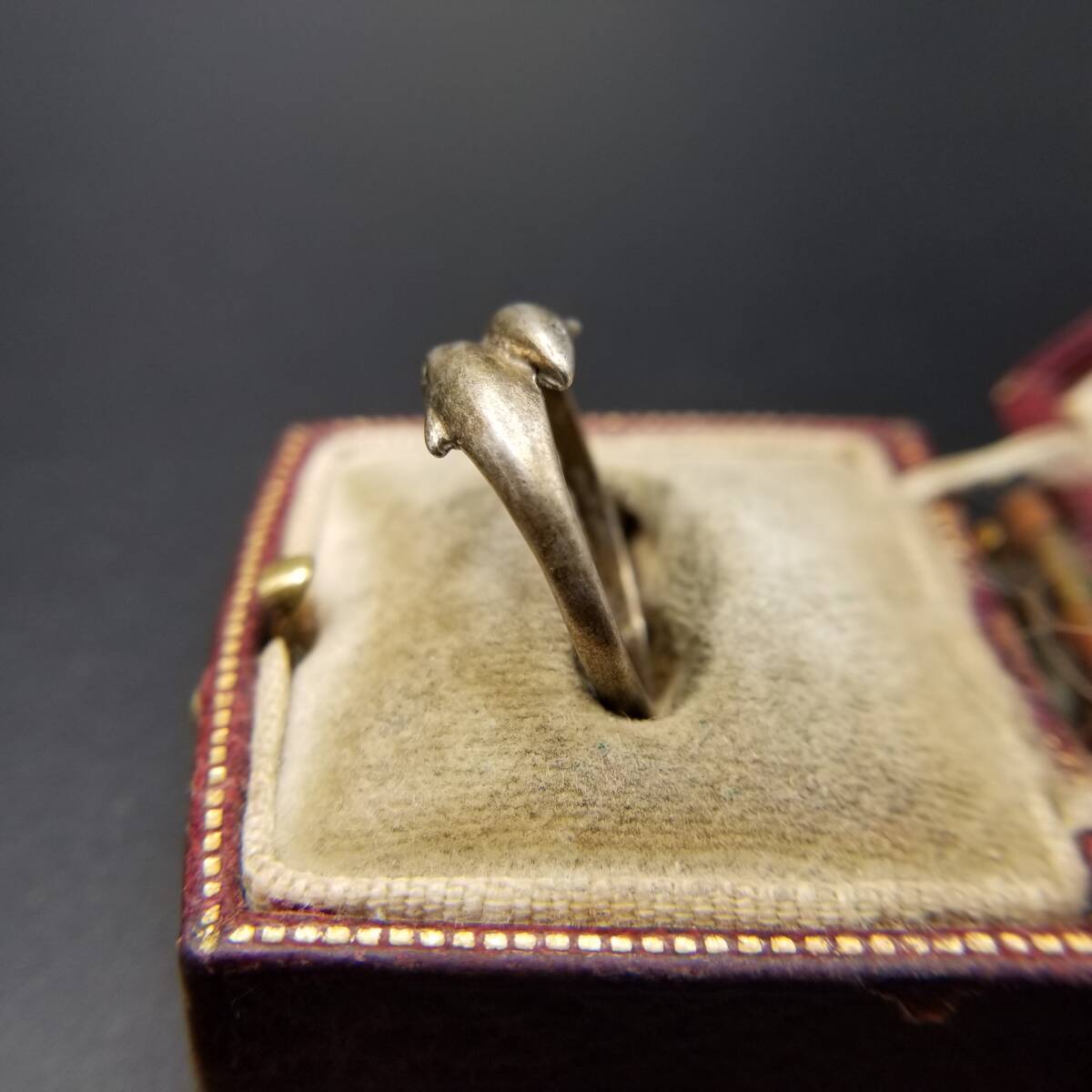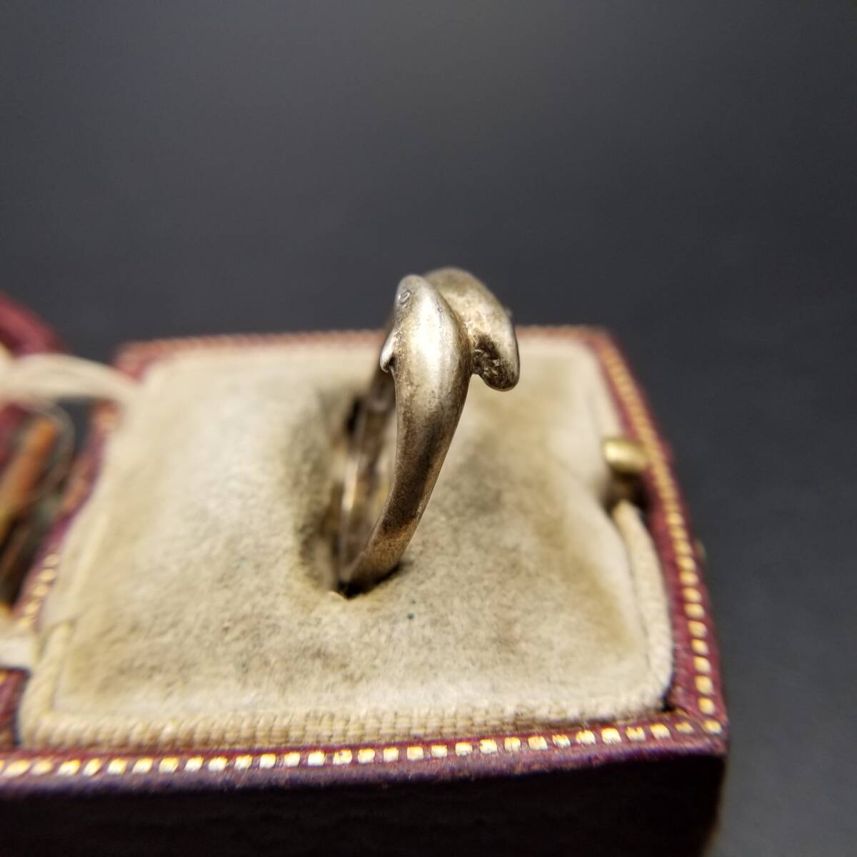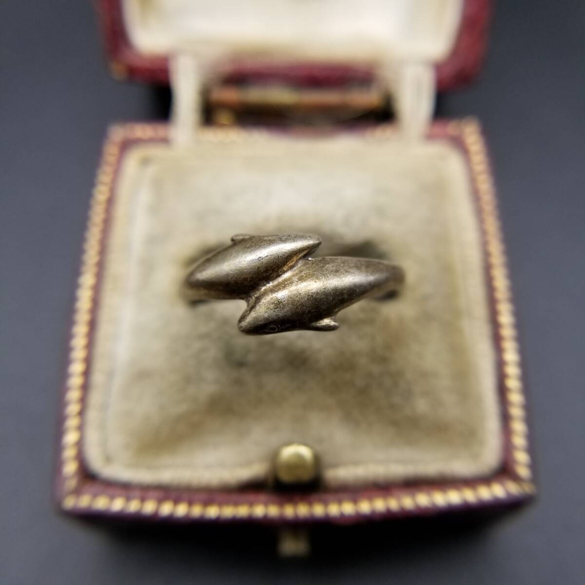 2頭のイルカ 海の生き物モチーフ 925 シルバー ヴィンテージ リング 銀 指輪 アニマル ゴールドトーン レトロ キュート シンプル Y21-E