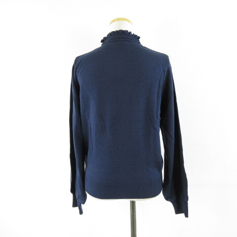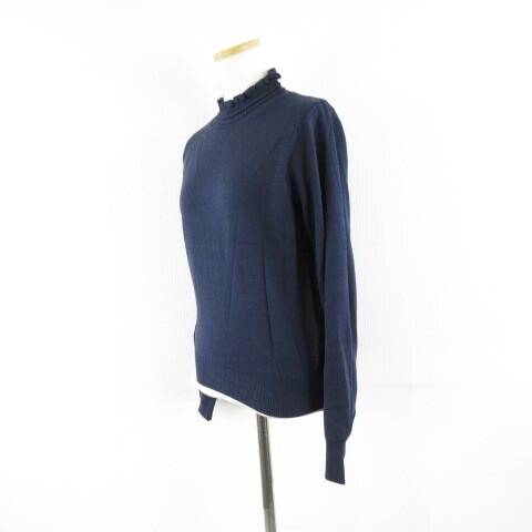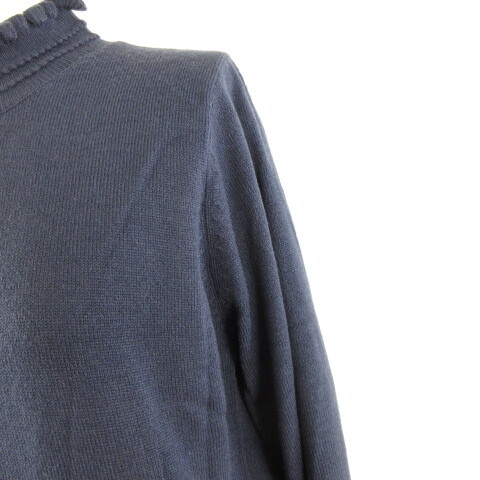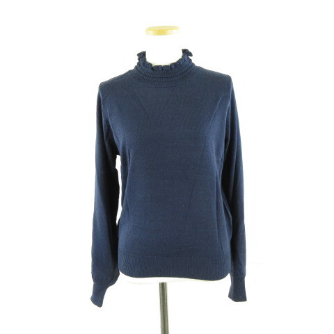 アースミュージック&エコロジー EARTH MUSIC & ECOLOGY Premium Label タックフリル衿ニットプルオーバー 長袖 紺 M レディース