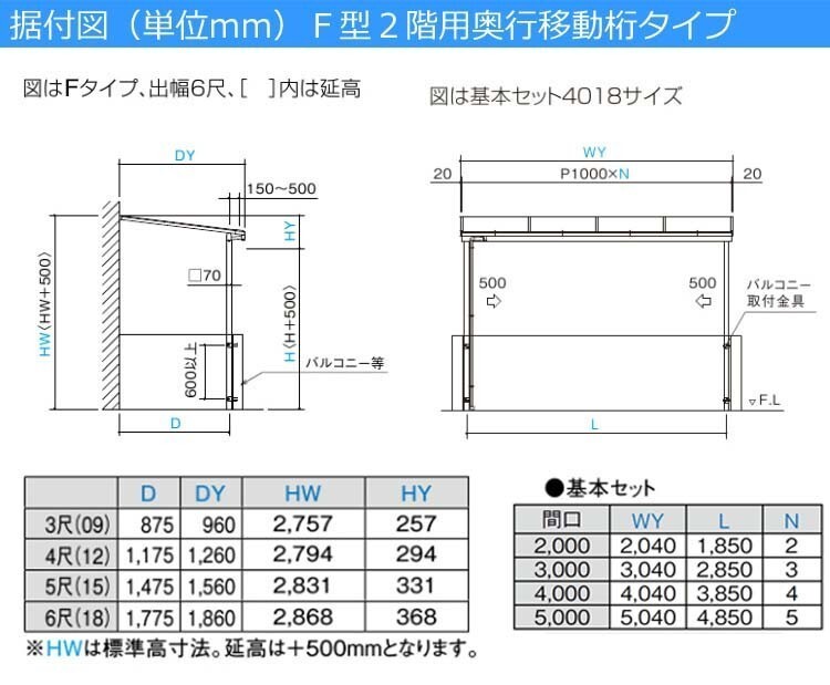 注意事項 | 3階への取付は出幅3尺・4尺のみ対応可能です。 |