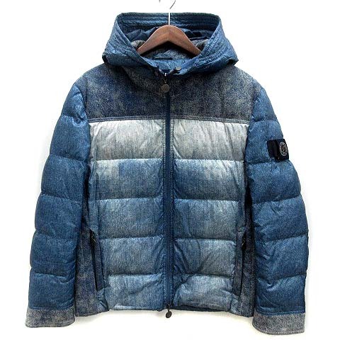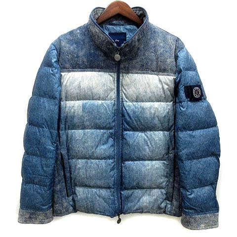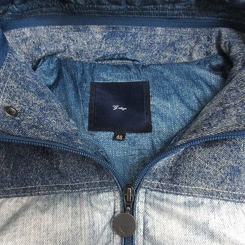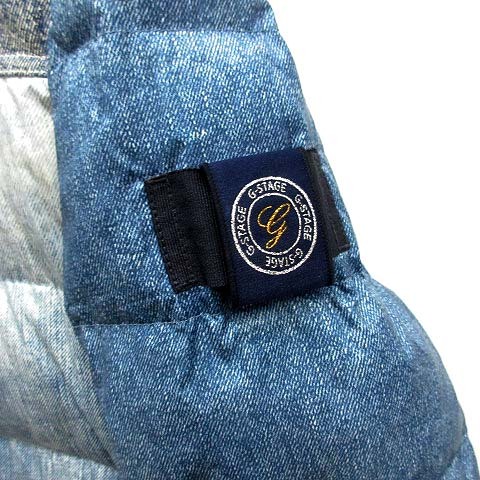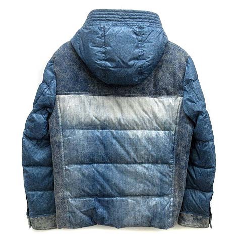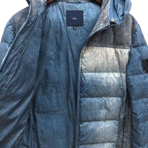 ジーステージ G-stage デニム プリント 切替 フーデット ダウン ジャケット 600404 ブルー 青 48 メンズ