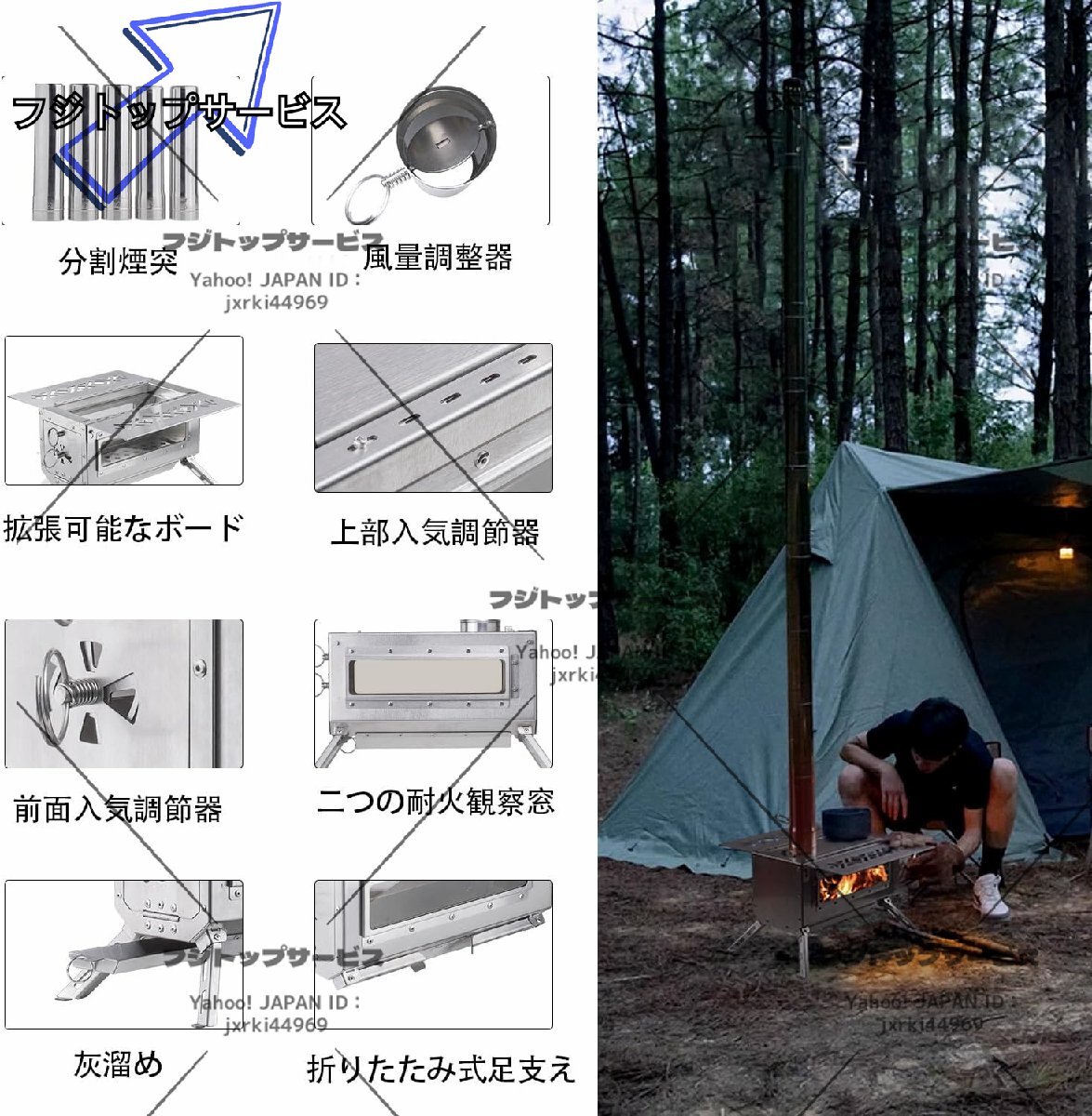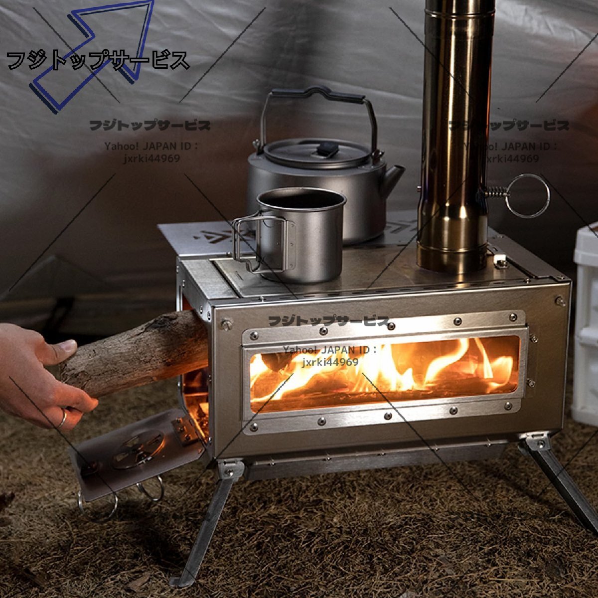 ストーブ アウトドア 調理器具 暖炉 キャンプ 折りたたみ テント 煙突付き 3面の耐熱ガラス窓 組立式 焚き火台