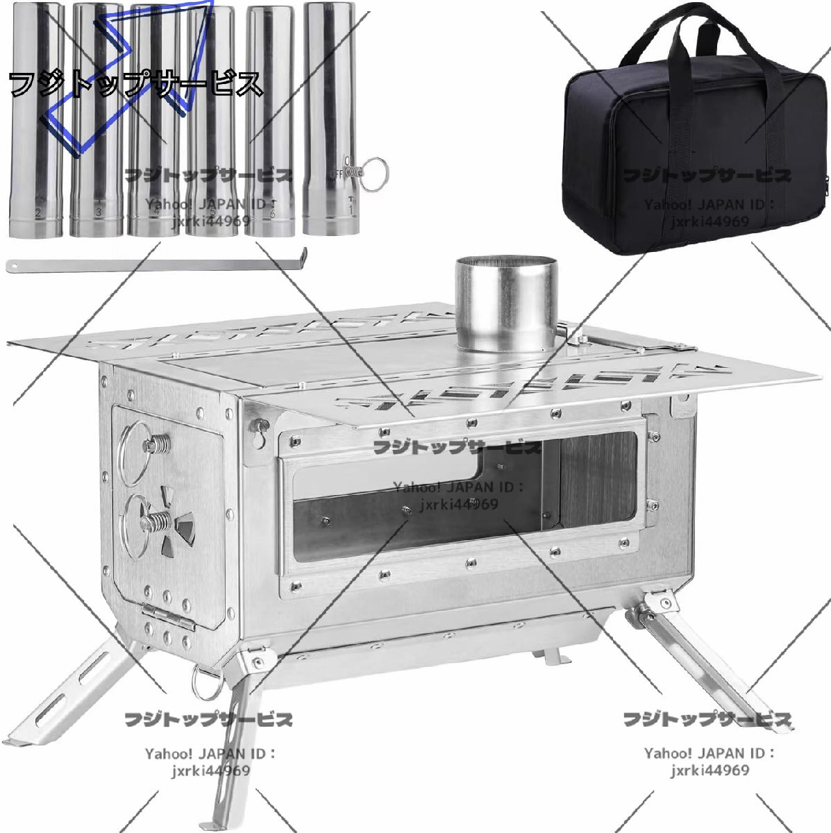 セット内容:薪ストーブX1、煙突X7、グリル網X1、灰かき棒X1