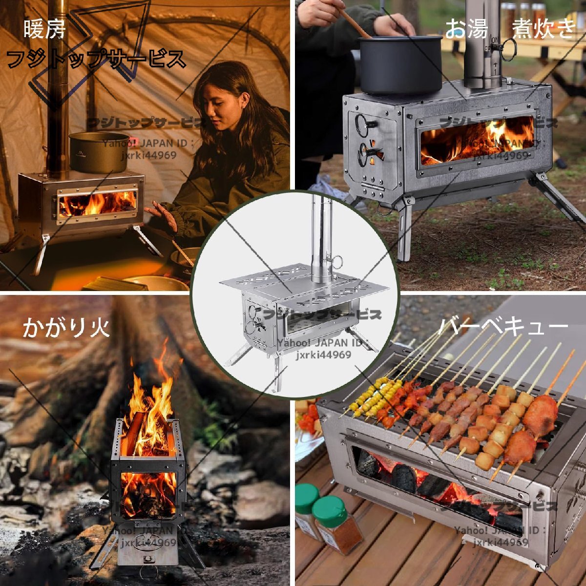 ●四本脚は折り畳めるデザイン、持ち運びや収納が快適にできます。工具なしで組み立てられるシンプル構造。脚を展開し、煙突を接続するだけで完成。