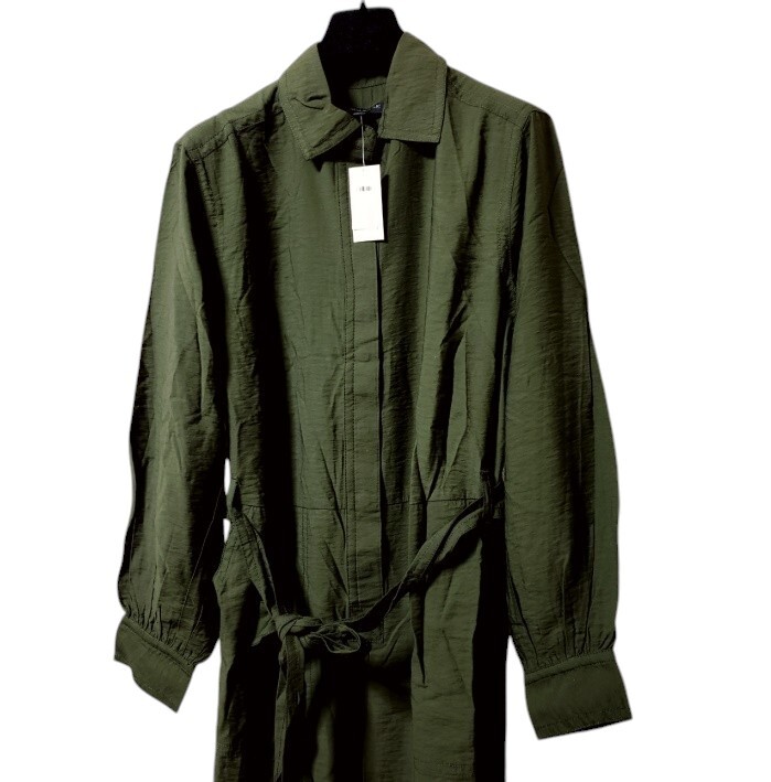 落ち感のあるレーヨン混素材、ゆったりしたサイズ感です。画像2.3の共布ベルトが付属します。