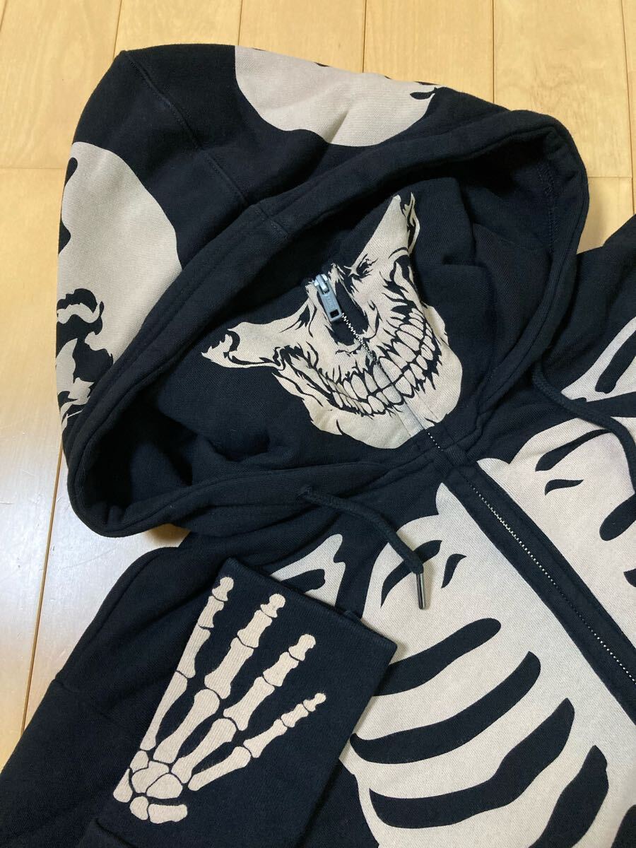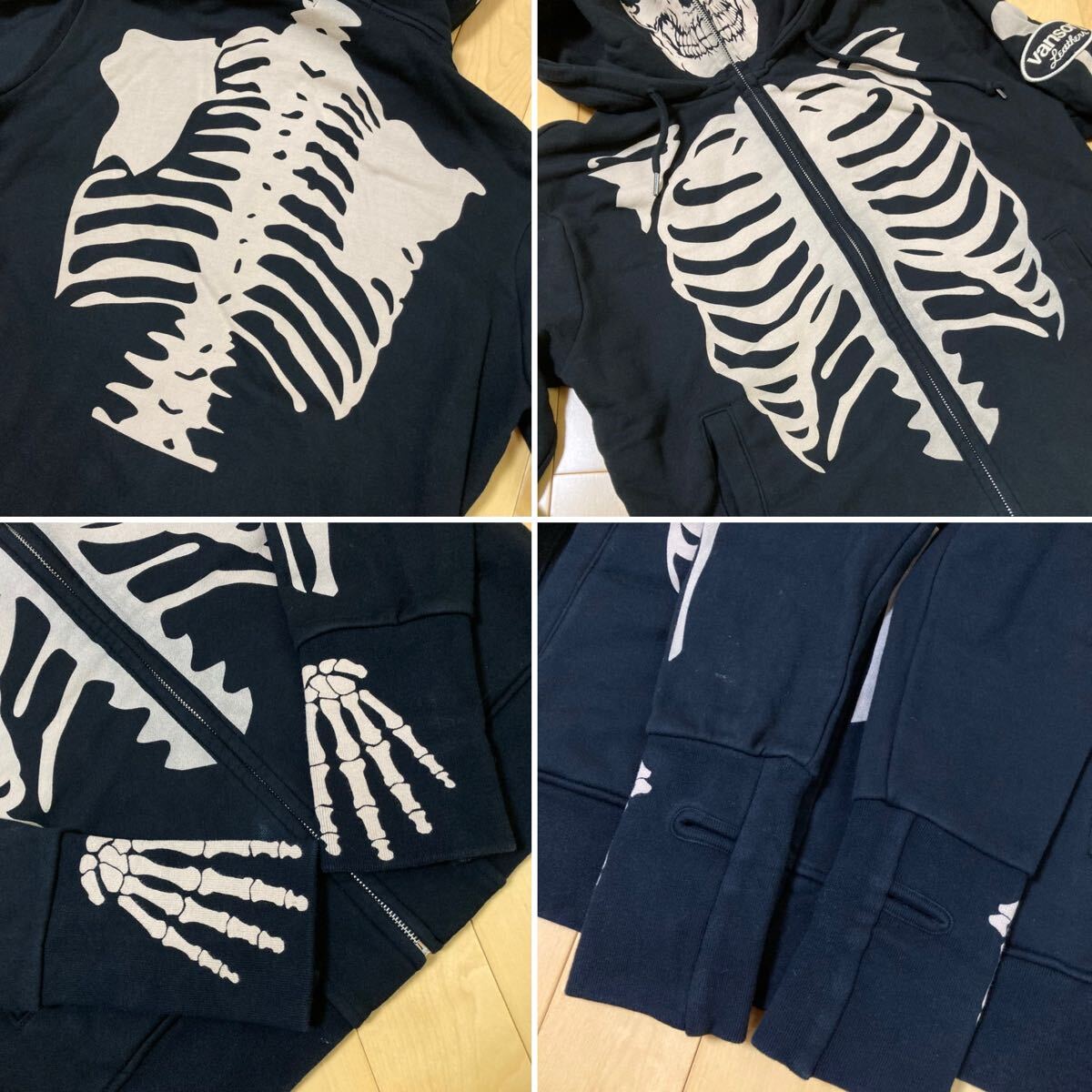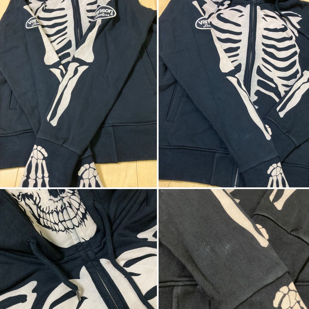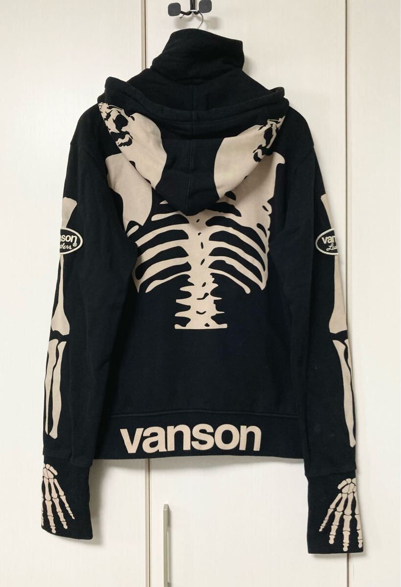 XL☆[VANSON] SKULL BONE FULL ZIP PARKA 骨 ボーン スカル フルジップパーカー XL ブラック バンソン